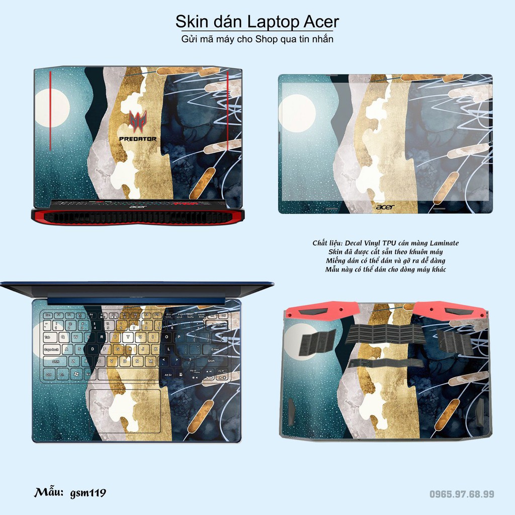 Giới thiệu Skin dán Laptop Acer in hình sơn mài (inbox mã máy cho Shop)