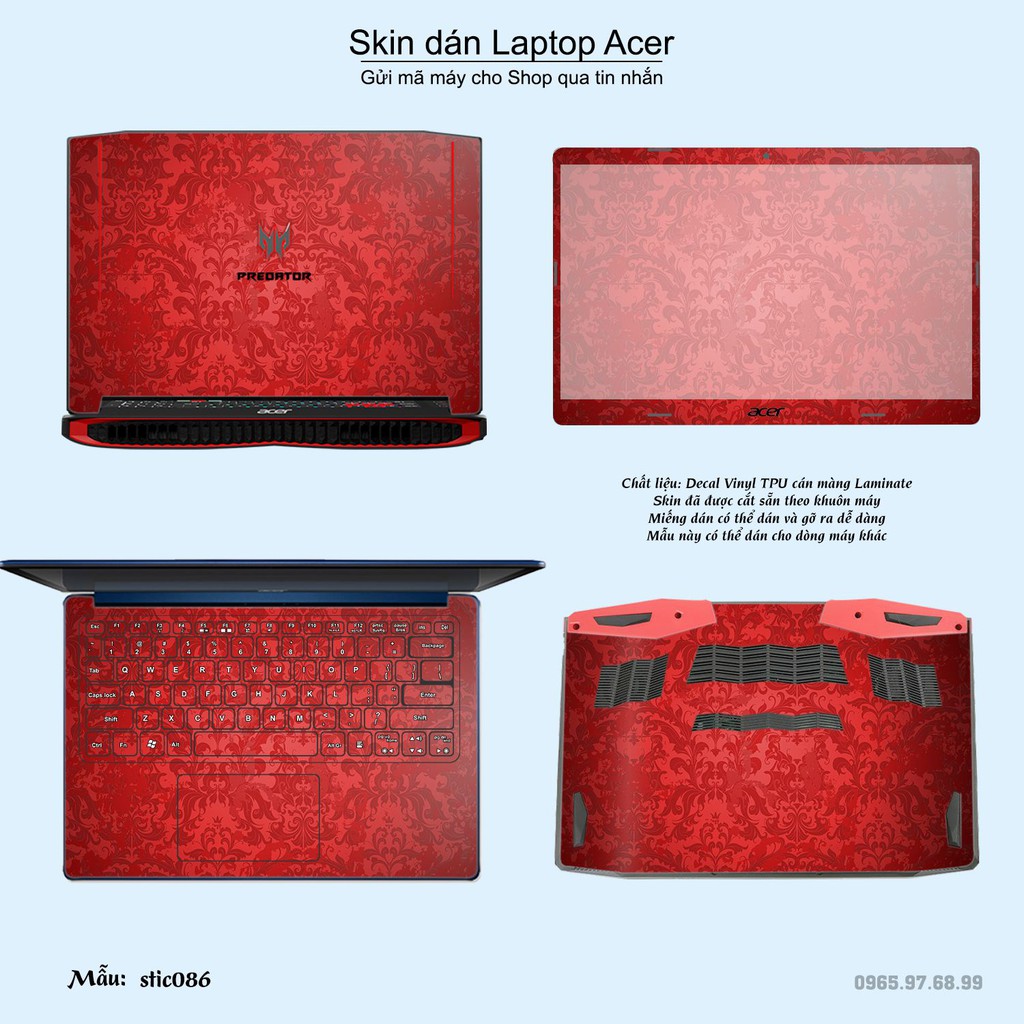 Máy tính & Laptop > Phụ Kiện Máy Tính > Miếng Dán & Ốp Laptop || Skin dán Laptop Acer in hình Hoa văn sticker bộ 15 (inbox mã máy cho Shop)Còn hàng