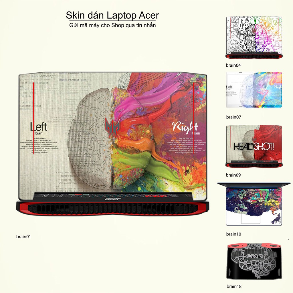 Giới thiệu Skin dán Laptop Acer in hình Left Brain Right Brain (inbox mã máy cho Shop)