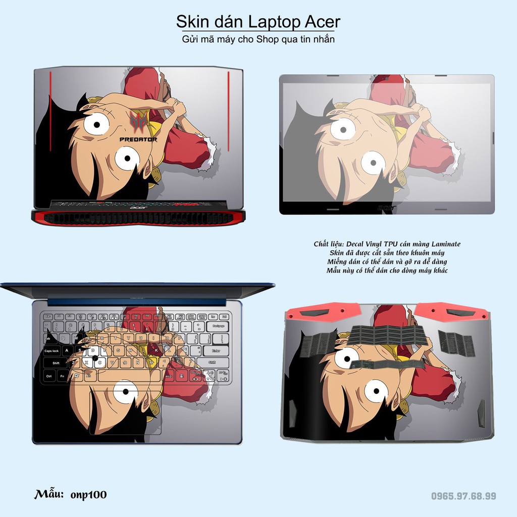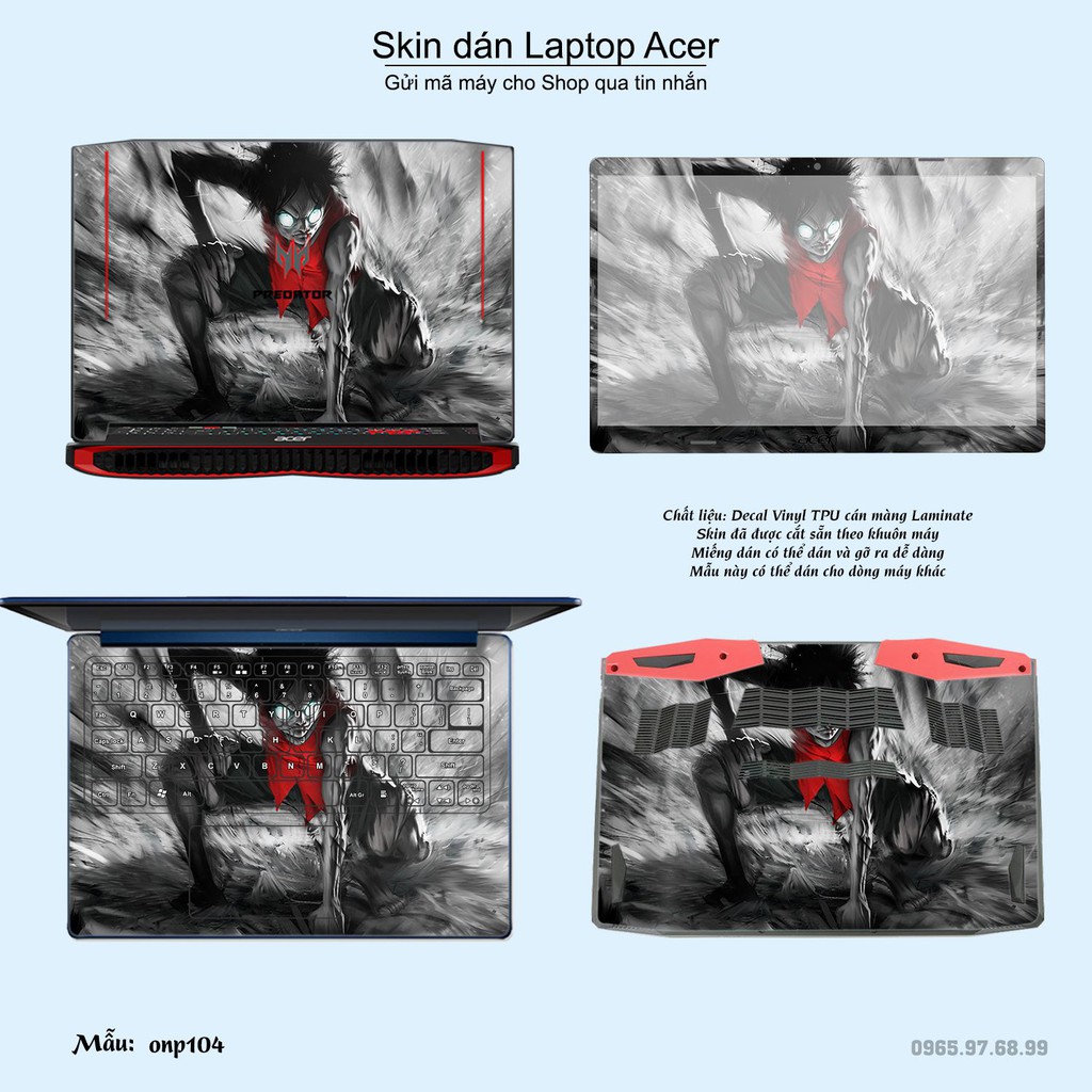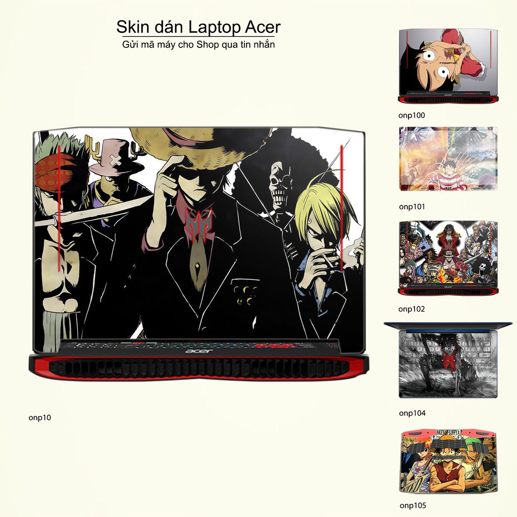 Máy tính & Laptop > Phụ Kiện Máy Tính > Miếng Dán & Ốp Laptop || Skin dán Laptop Acer in hình One Piece bộ 10 (inbox mã máy cho Shop)Còn hàng