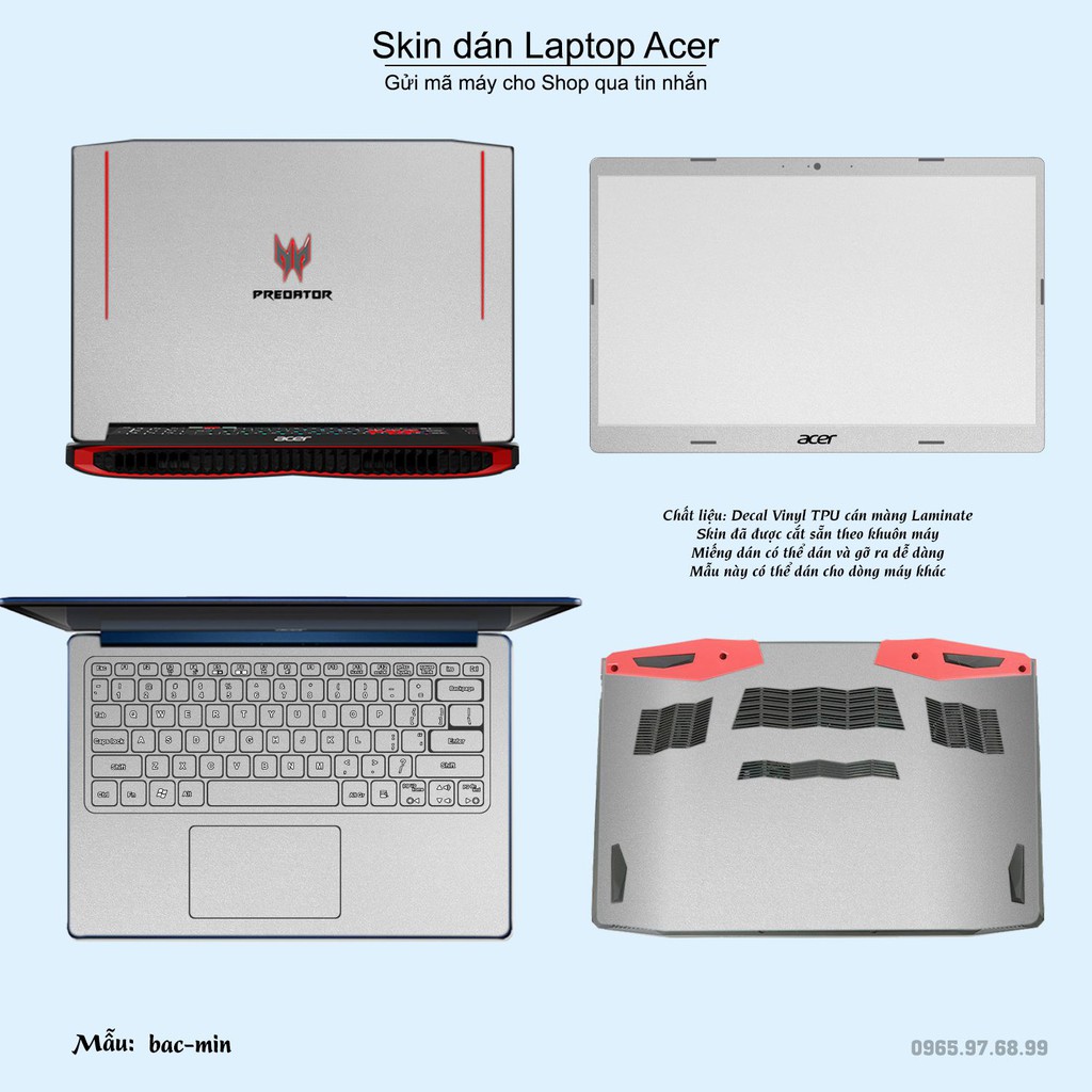 Giới thiệu Skin dán Laptop Acer in màu bạc mịn (inbox mã máy cho Shop)