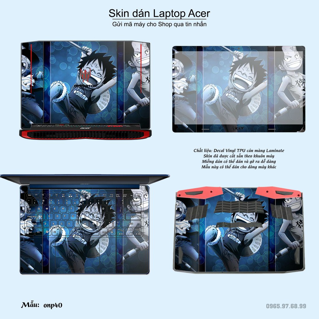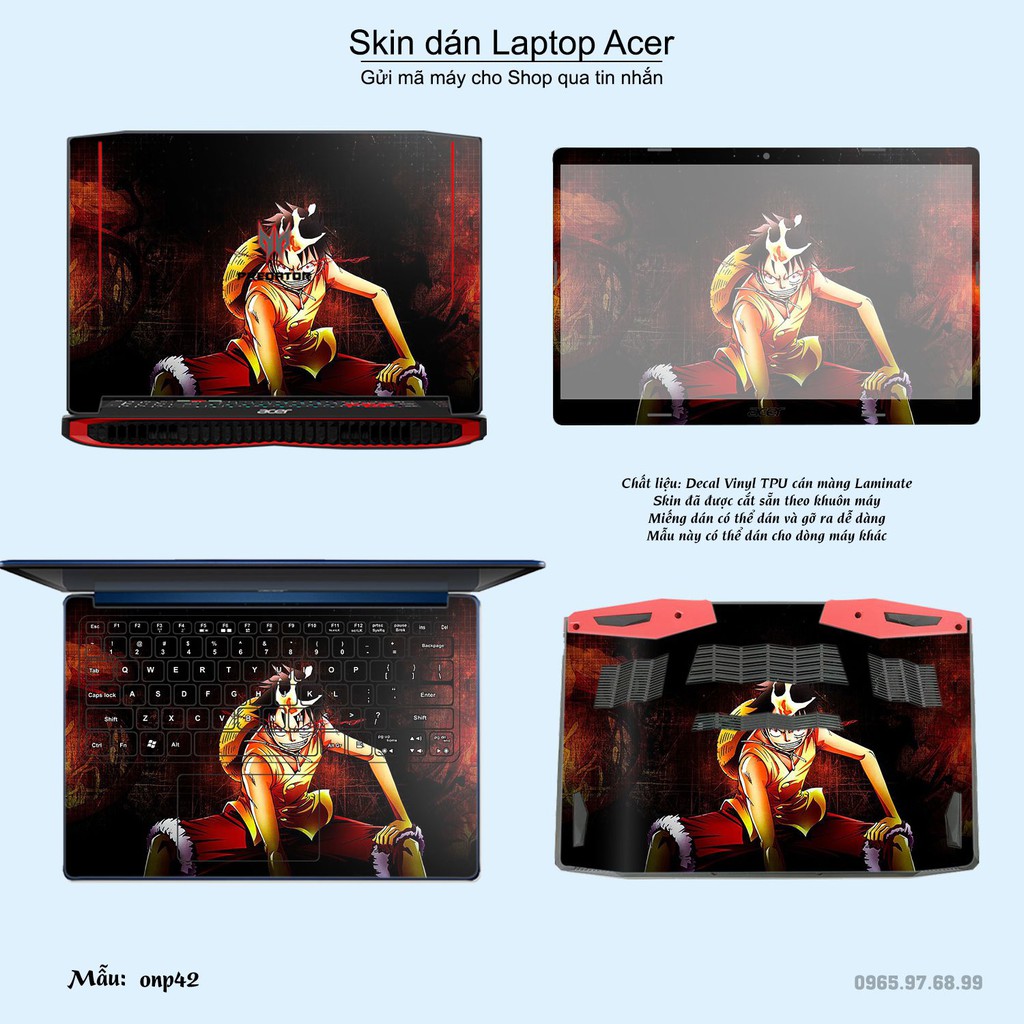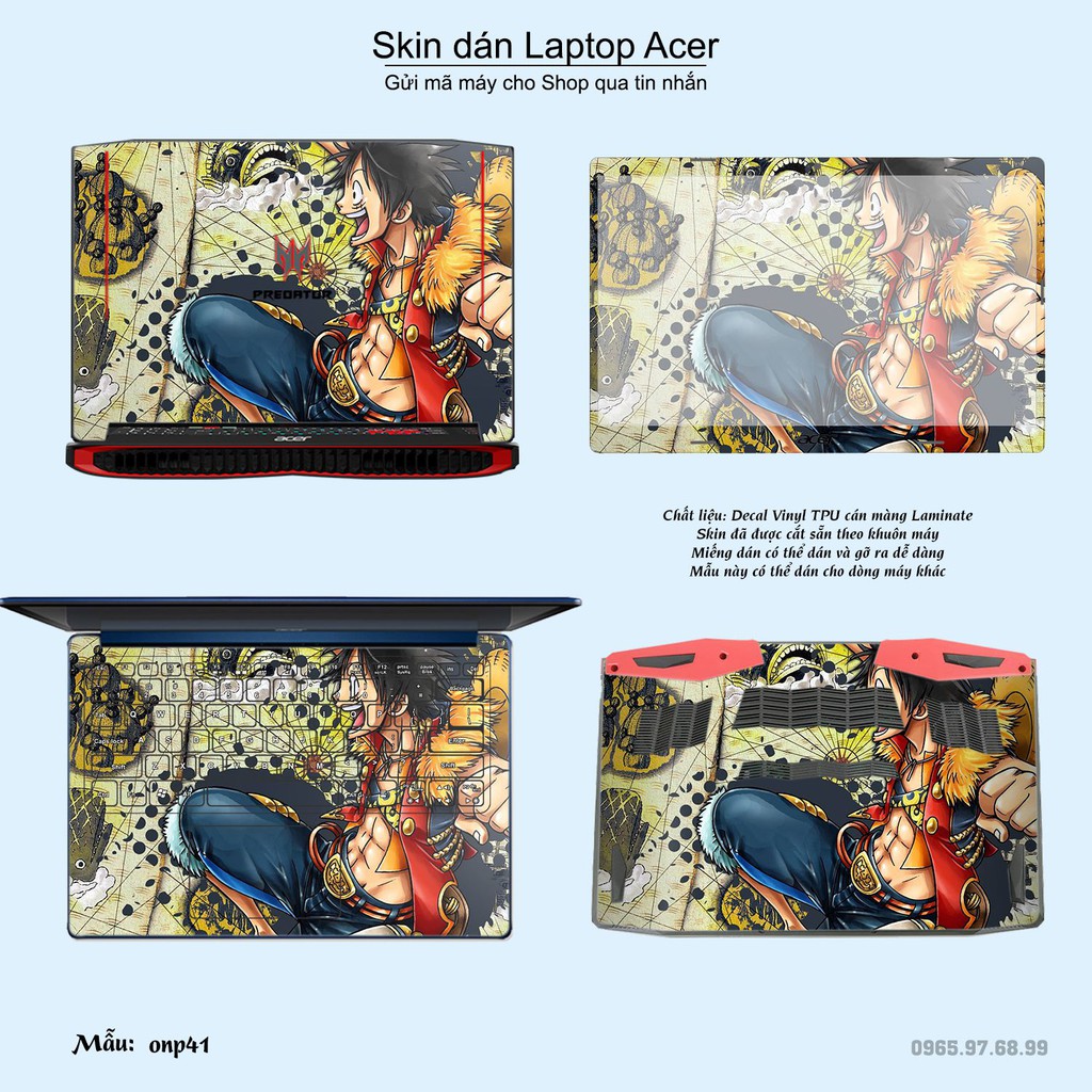 Máy tính & Laptop > Phụ Kiện Máy Tính > Miếng Dán & Ốp Laptop || Skin dán Laptop Acer in hình One Piece bộ 24 (inbox mã máy cho Shop)Còn hàng