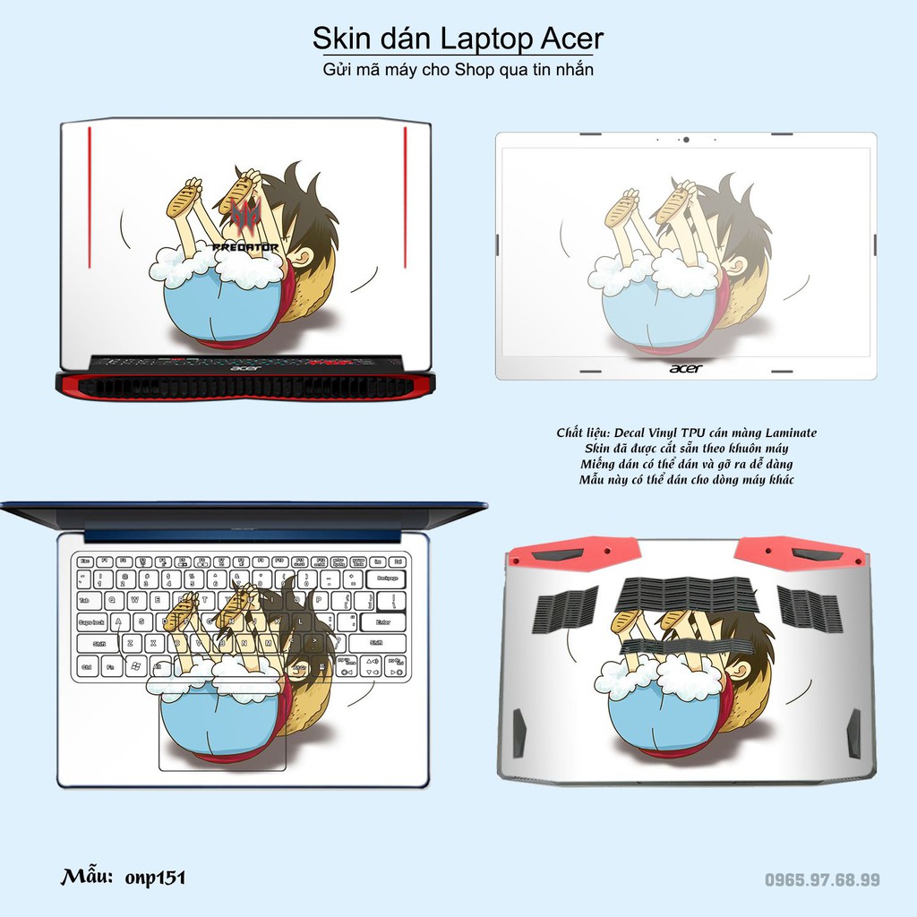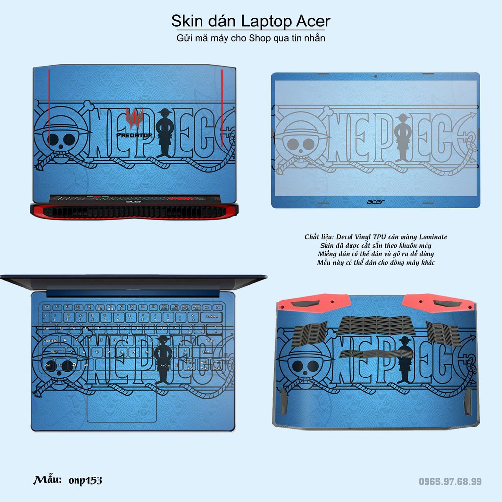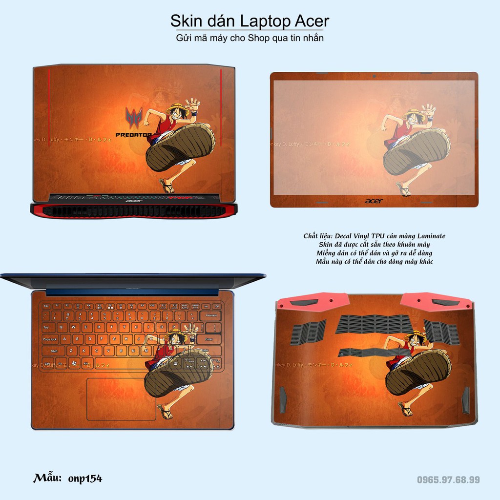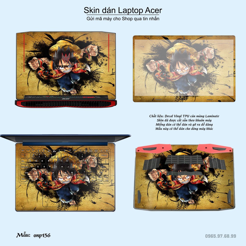 Máy tính & Laptop > Phụ Kiện Máy Tính > Miếng Dán & Ốp Laptop || Skin dán Laptop Acer in hình One Piece bộ 19 (inbox mã máy cho Shop)Còn hàng