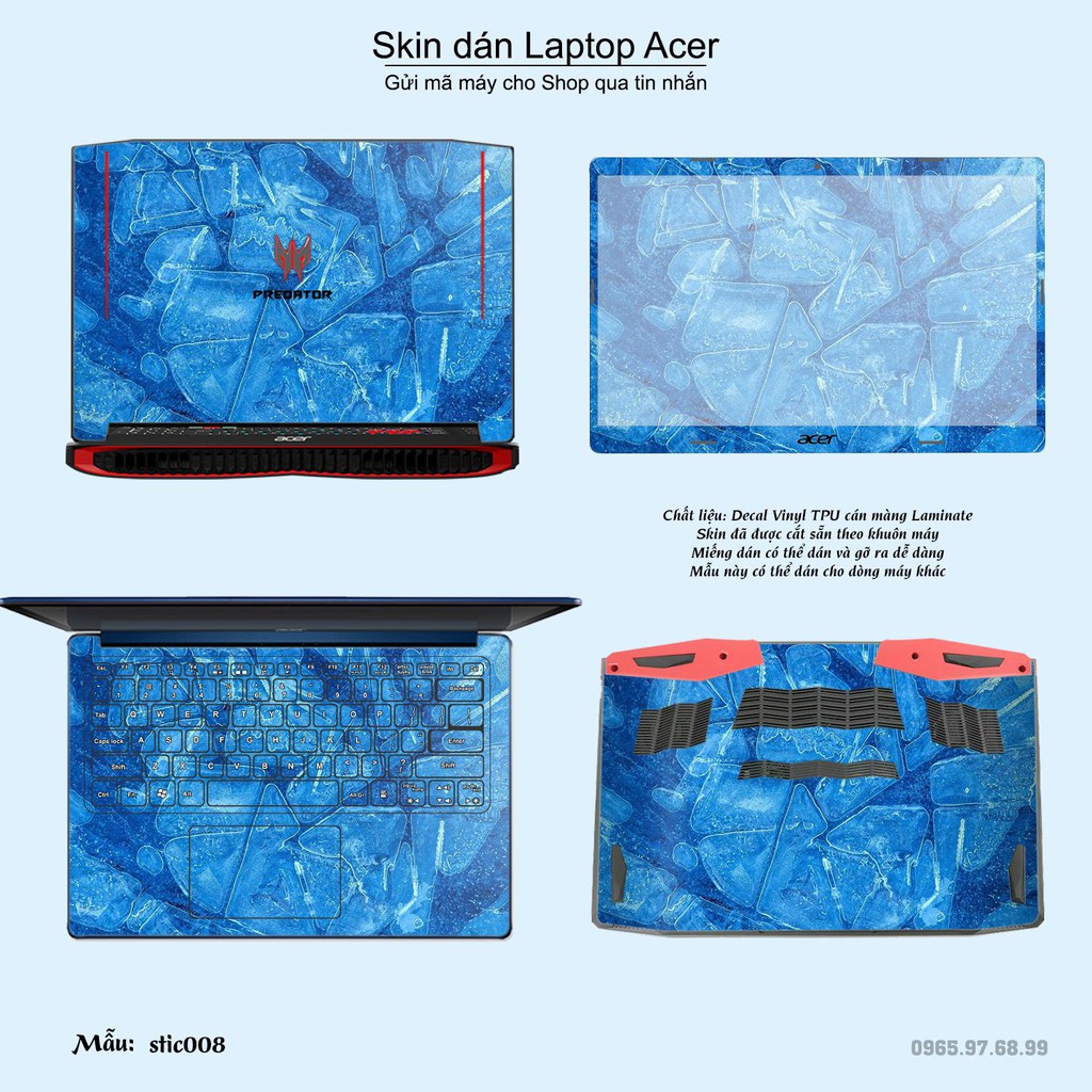 Skin dán là phương pháp tối ưu để làm đẹp và bảo vệ chiếc Laptop Acer của bạn,Miếng dán đã được cắt sẵn theo khuôn máy, cắt chính xác các chi tiết như camera, cảm biến, logo, bàn phím...