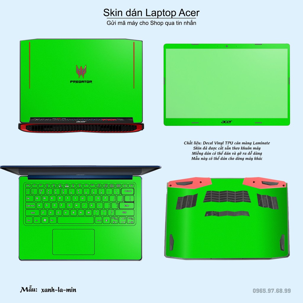 Giới thiệu Skin dán Laptop Acer in màu xanh lá mịn (inbox mã máy cho Shop)