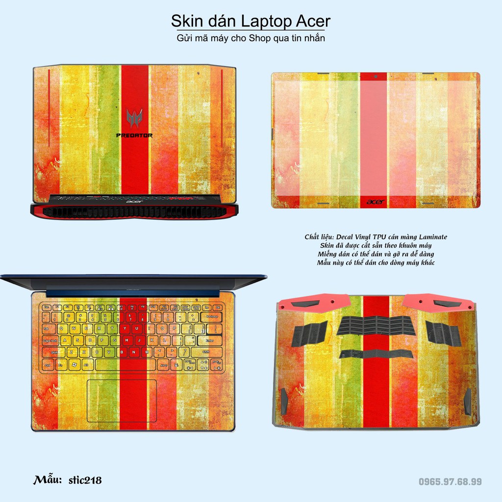 Skin dán là phương pháp tối ưu để làm đẹp và bảo vệ chiếc Laptop Acer của bạn,Miếng dán đã được cắt sẵn theo khuôn máy, cắt chính xác các chi tiết như camera, cảm biến, logo, bàn phím...