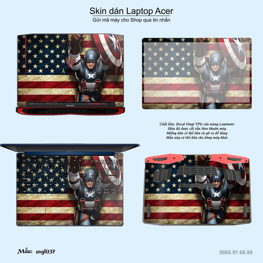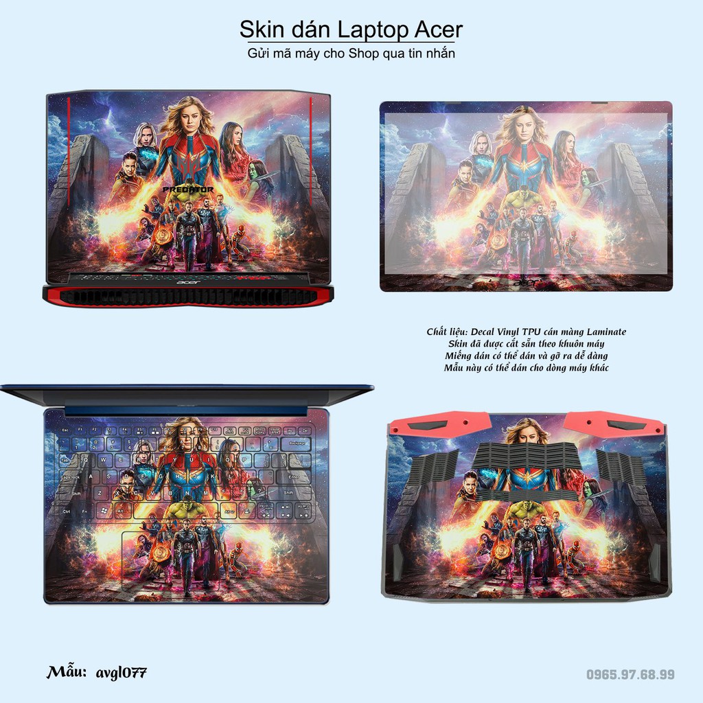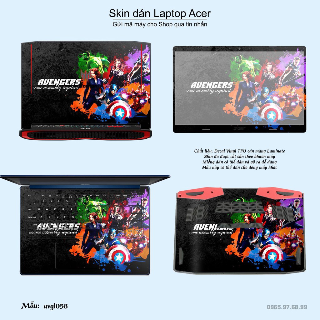 Skin dán Laptop Acer in hình Avenger (inbox mã máy cho Shop)