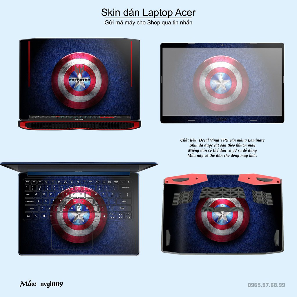 Giới thiệu Skin dán Laptop Acer in hình Avenger (inbox mã máy cho Shop)