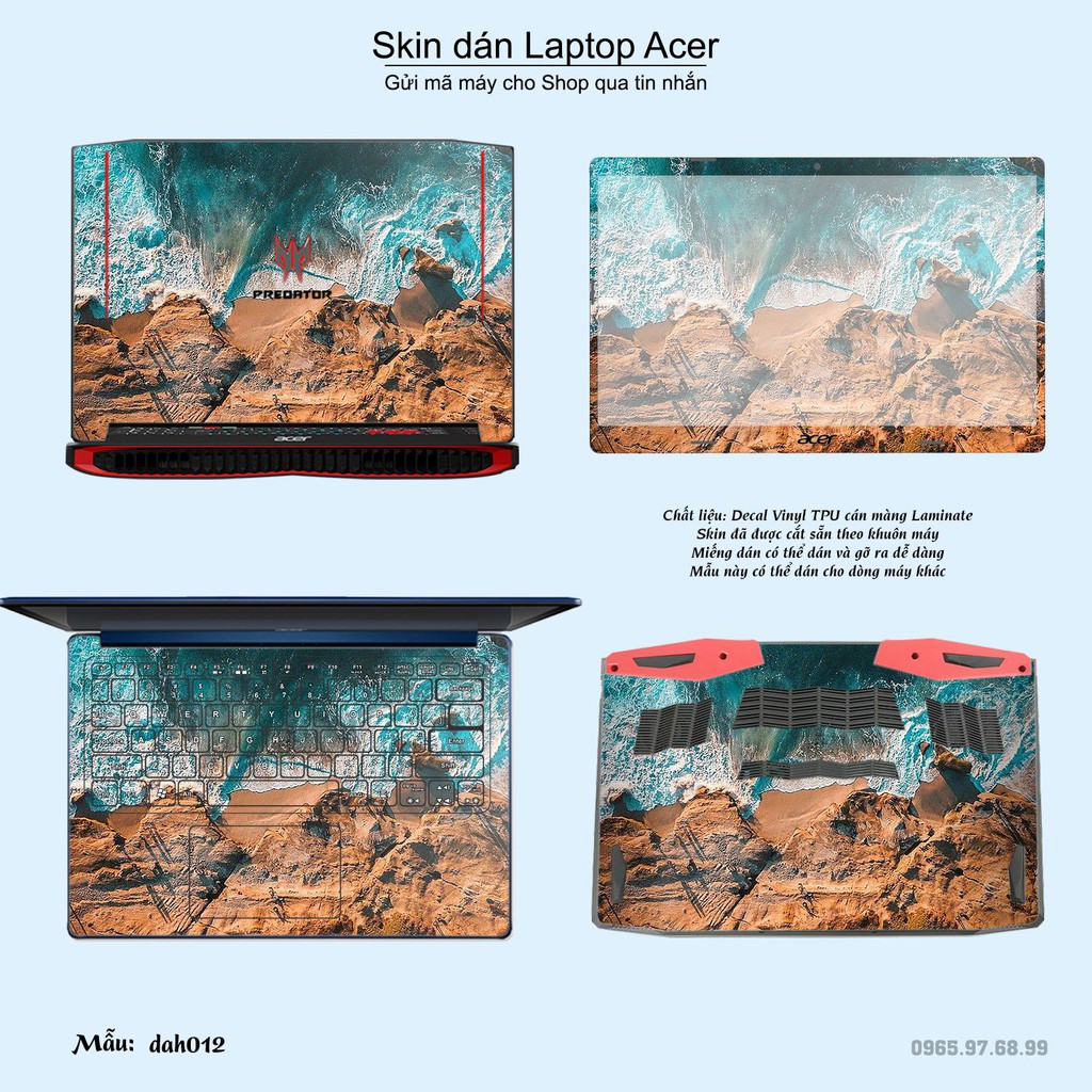Skin dán là phương pháp tối ưu để làm đẹp và bảo vệ chiếc Laptop Acer của bạn,Miếng dán đã được cắt sẵn theo khuôn máy, cắt chính xác các chi tiết như camera, cảm biến, logo, bàn phím...