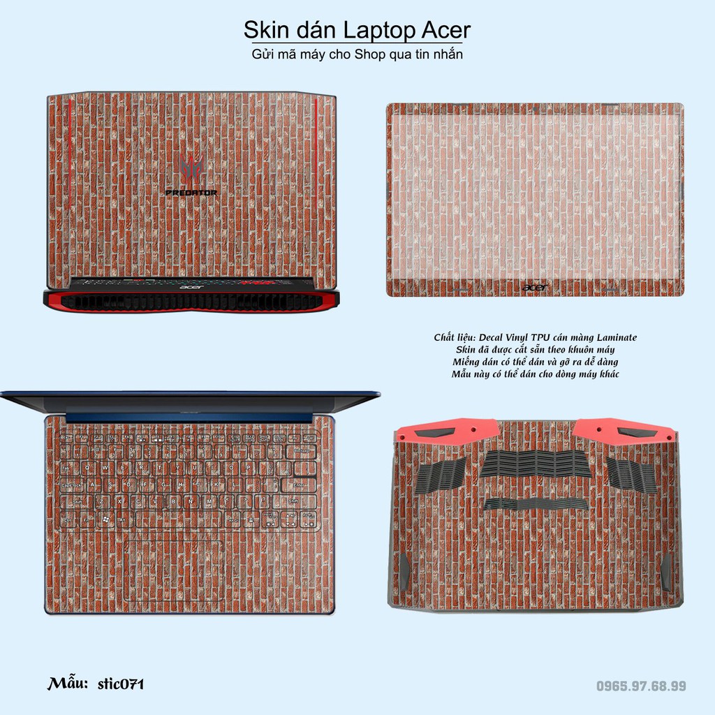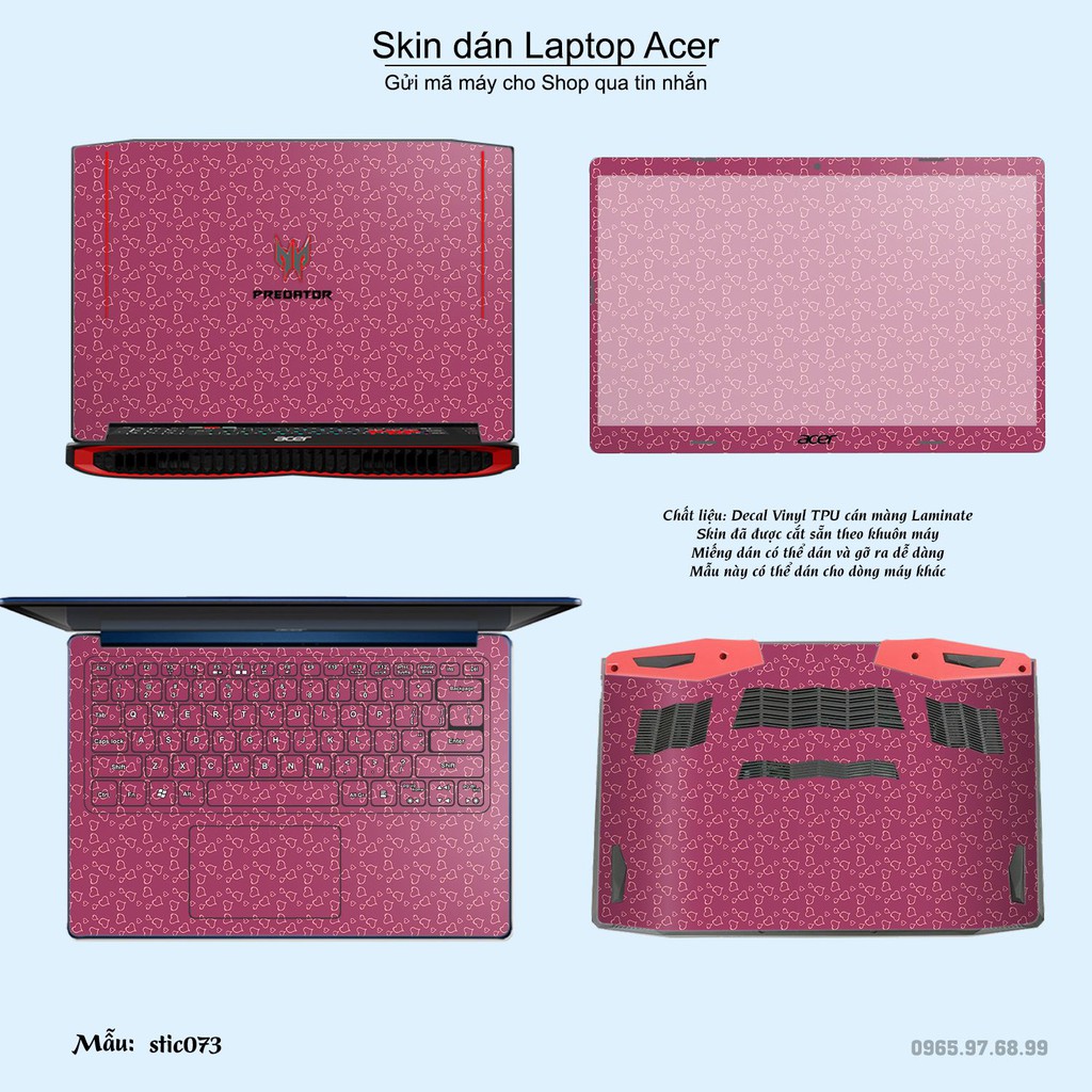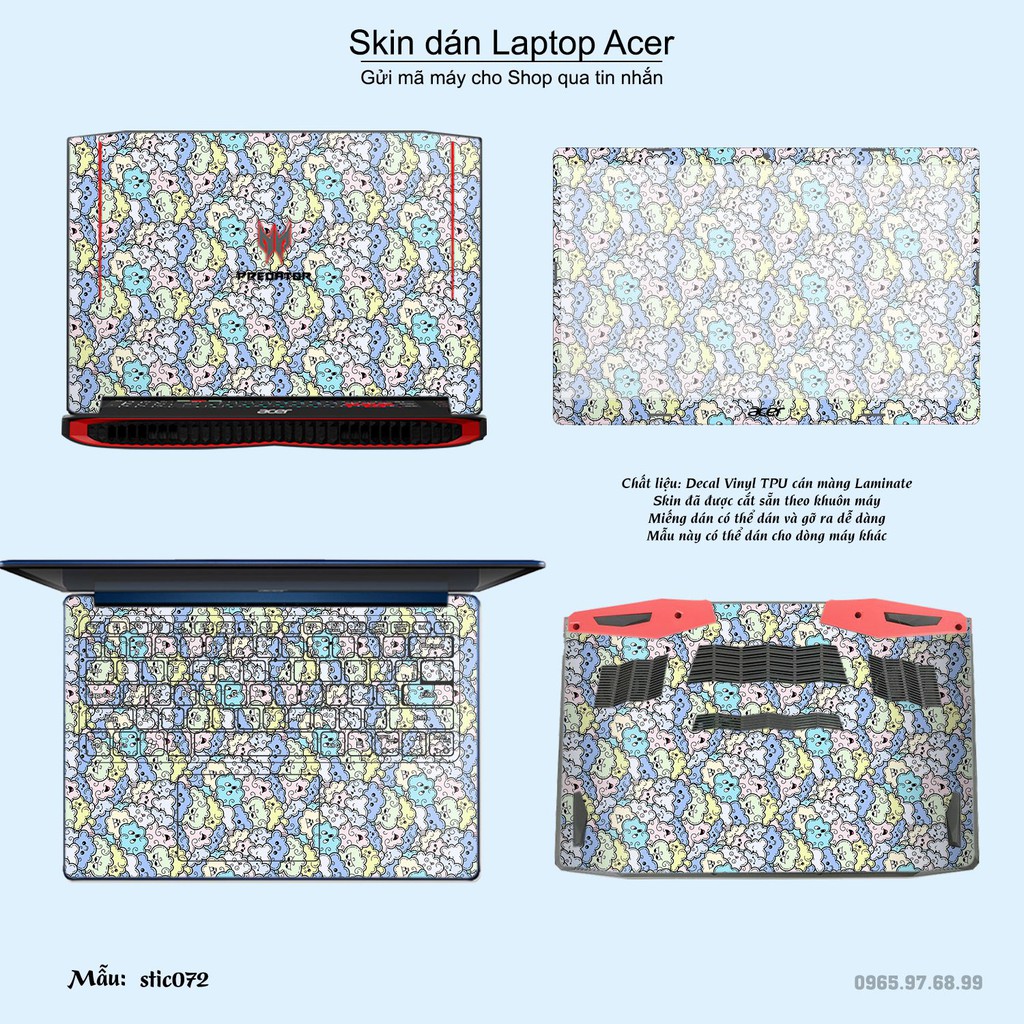 Máy tính & Laptop > Phụ Kiện Máy Tính > Miếng Dán & Ốp Laptop || Skin dán Laptop Acer in hình Hoa văn sticker bộ 12 (inbox mã máy cho Shop)Còn hàng
