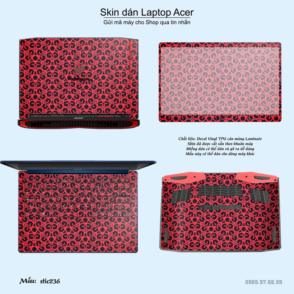 Máy tính & Laptop > Phụ Kiện Máy Tính > Miếng Dán & Ốp Laptop || Skin dán Laptop Acer in hình Hoa văn sticker bộ 38 (inbox mã máy cho Shop)Còn hàng