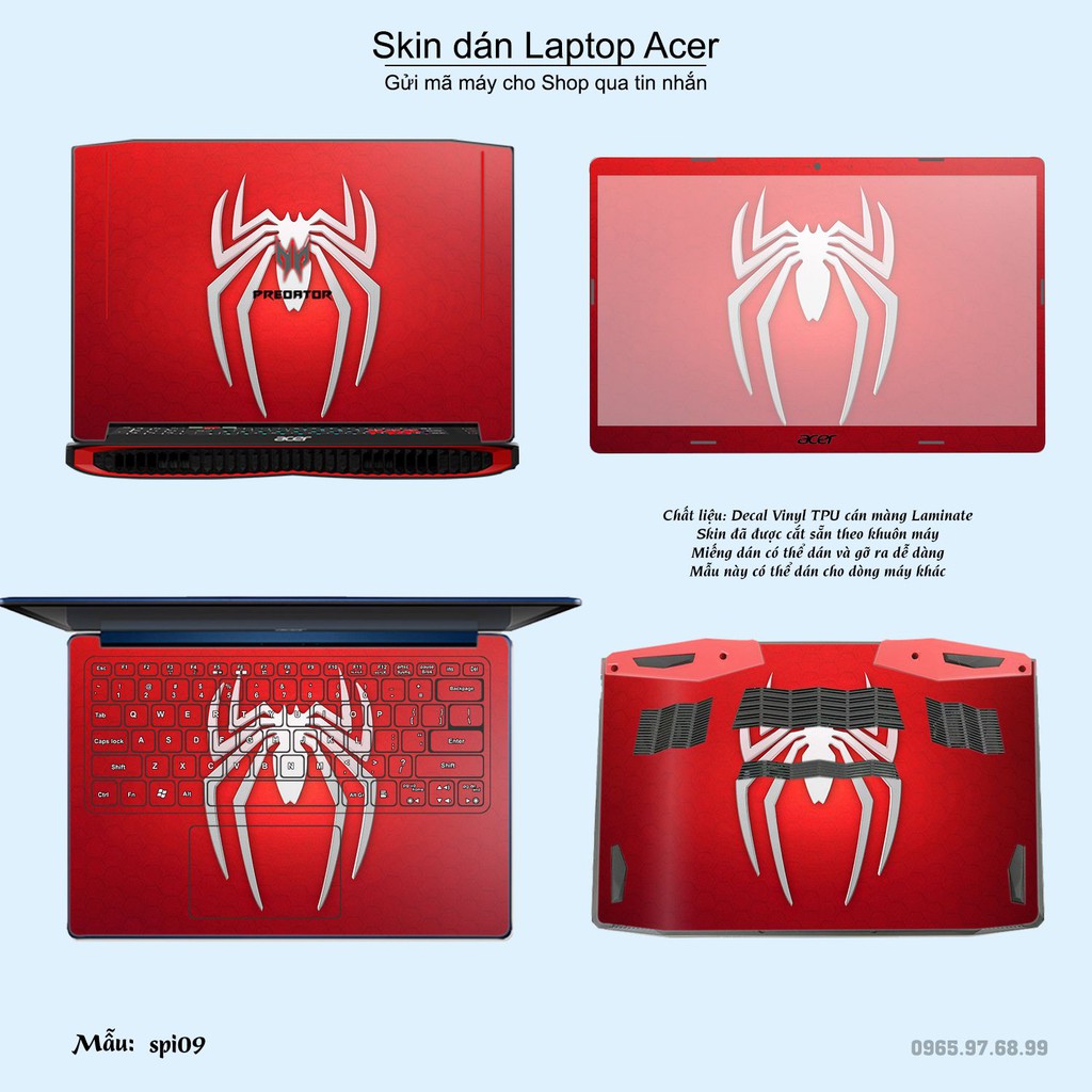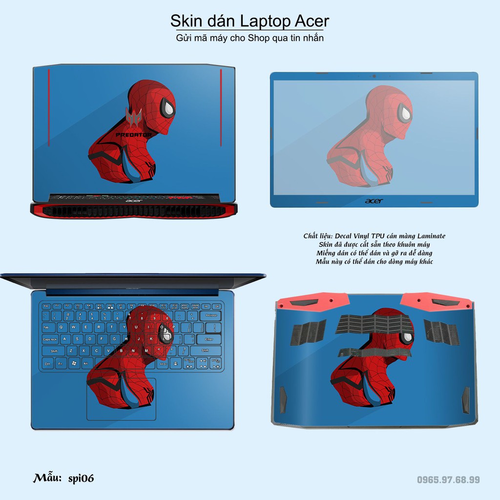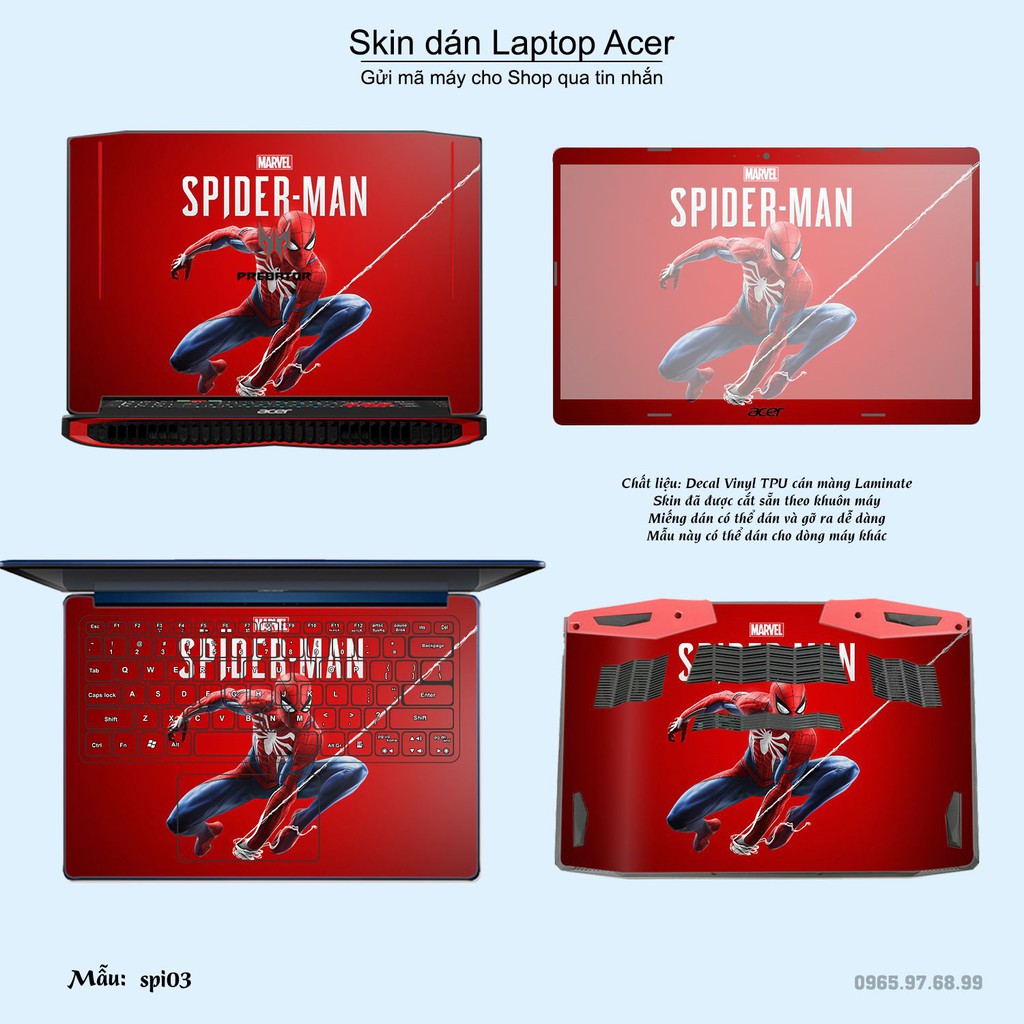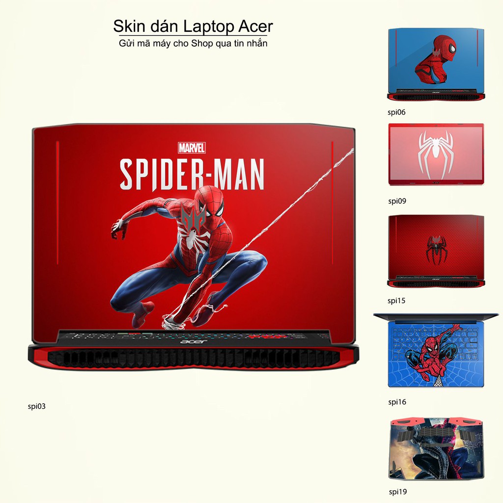 Máy tính & Laptop > Phụ Kiện Máy Tính > Miếng Dán & Ốp Laptop || Skin dán Laptop Acer in hình người nhện Spiderman (inbox mã máy cho Shop)Còn hàng