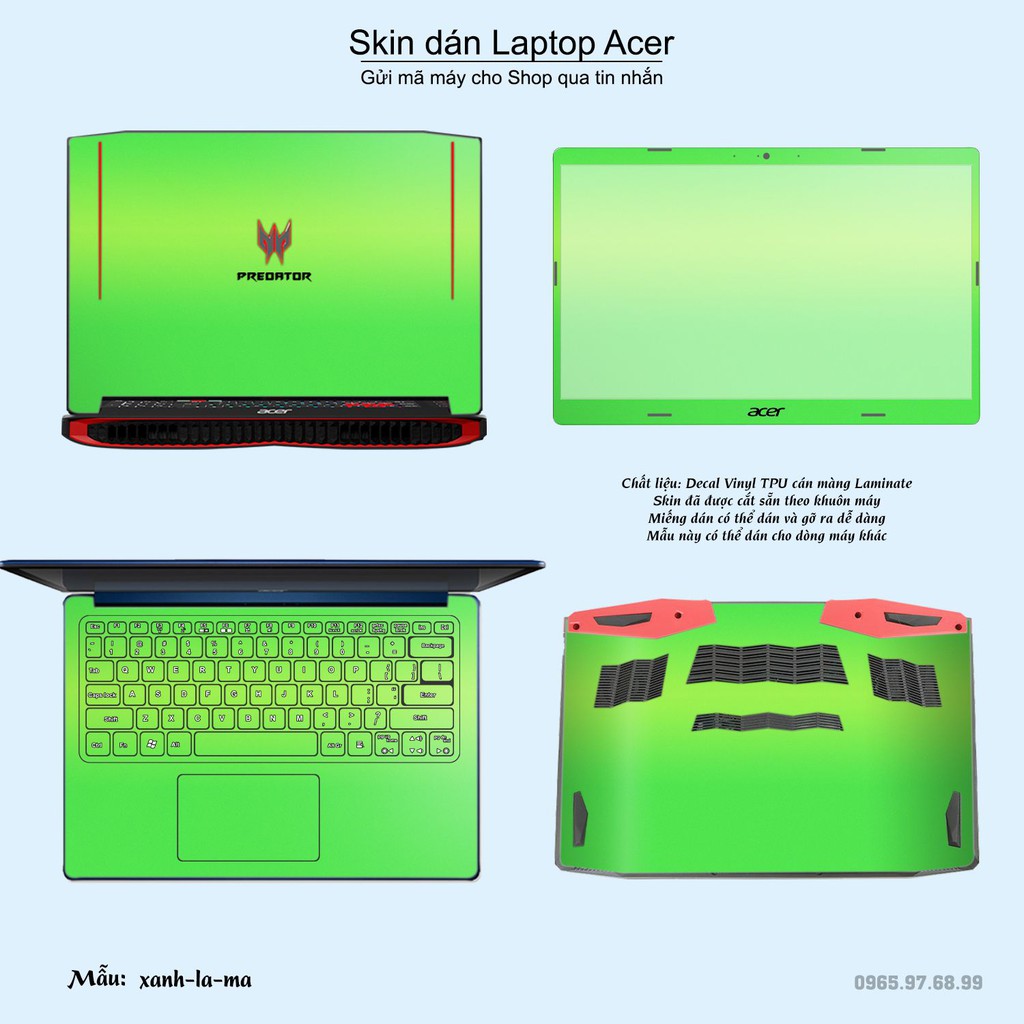 Giới thiệu Skin dán Laptop Acer màu xanh lá mạ (inbox mã máy cho Shop)