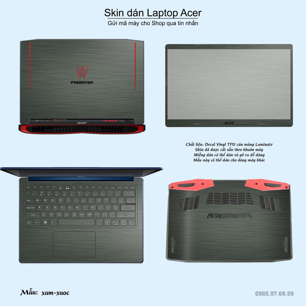 Skin dán Laptop Acer màu xám xước (inbox mã máy cho Shop)