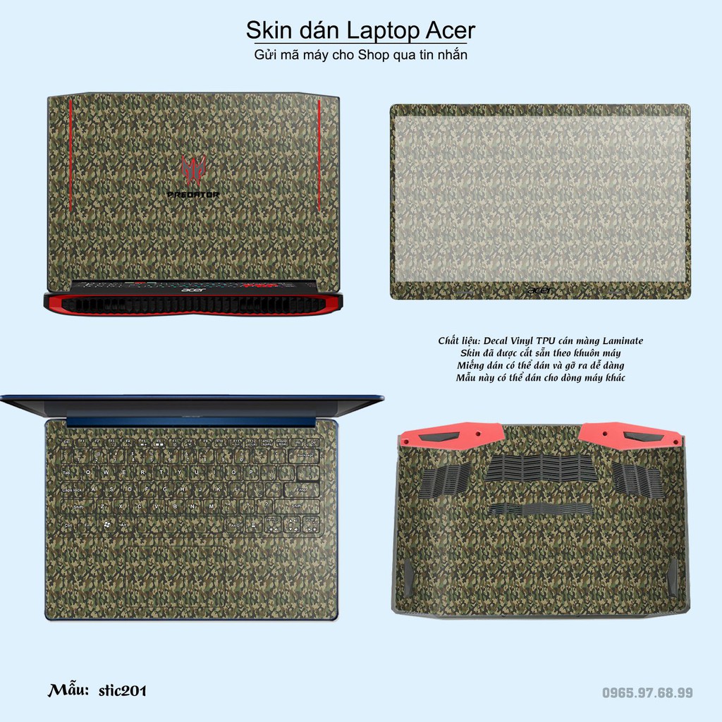Skin dán là phương pháp tối ưu để làm đẹp và bảo vệ chiếc Laptop Acer của bạn,Miếng dán đã được cắt sẵn theo khuôn máy, cắt chính xác các chi tiết như camera, cảm biến, logo, bàn phím...