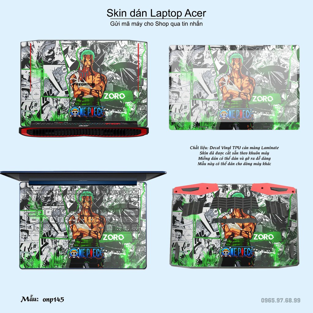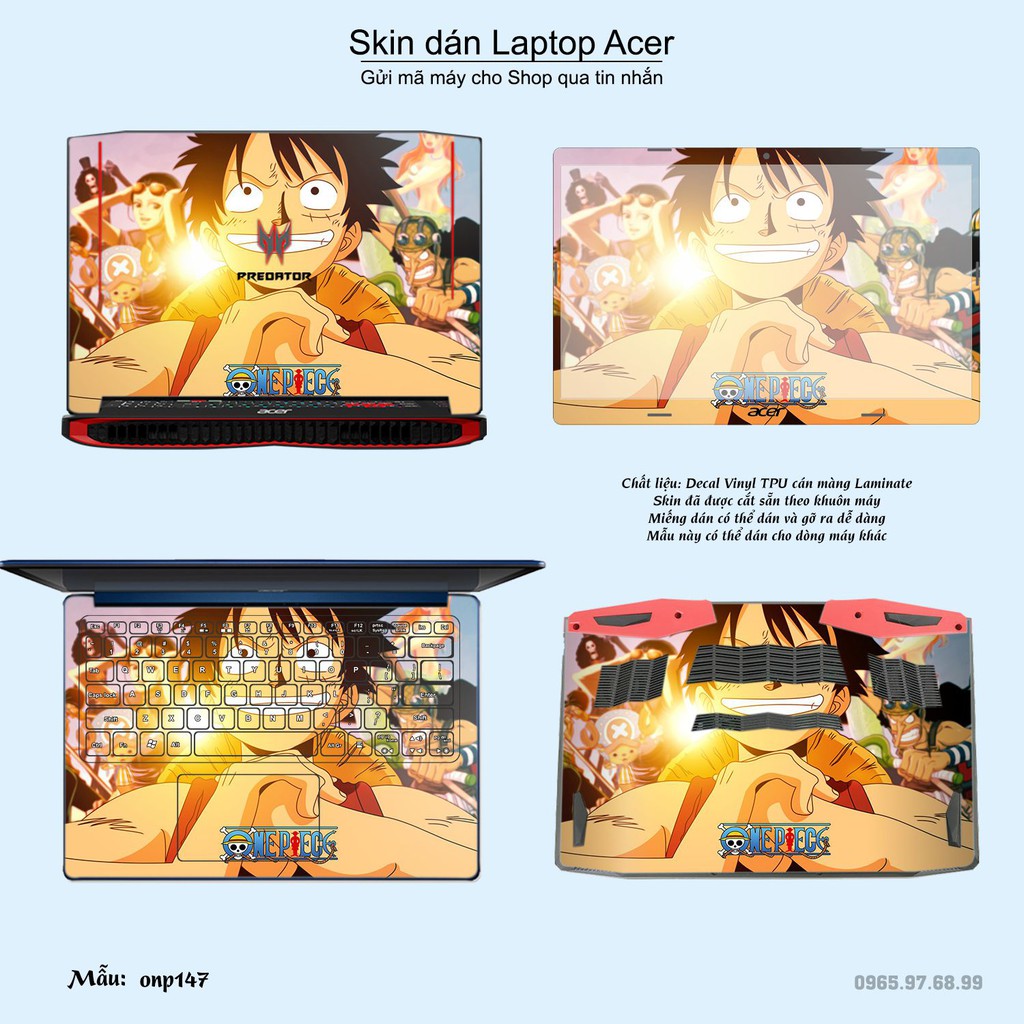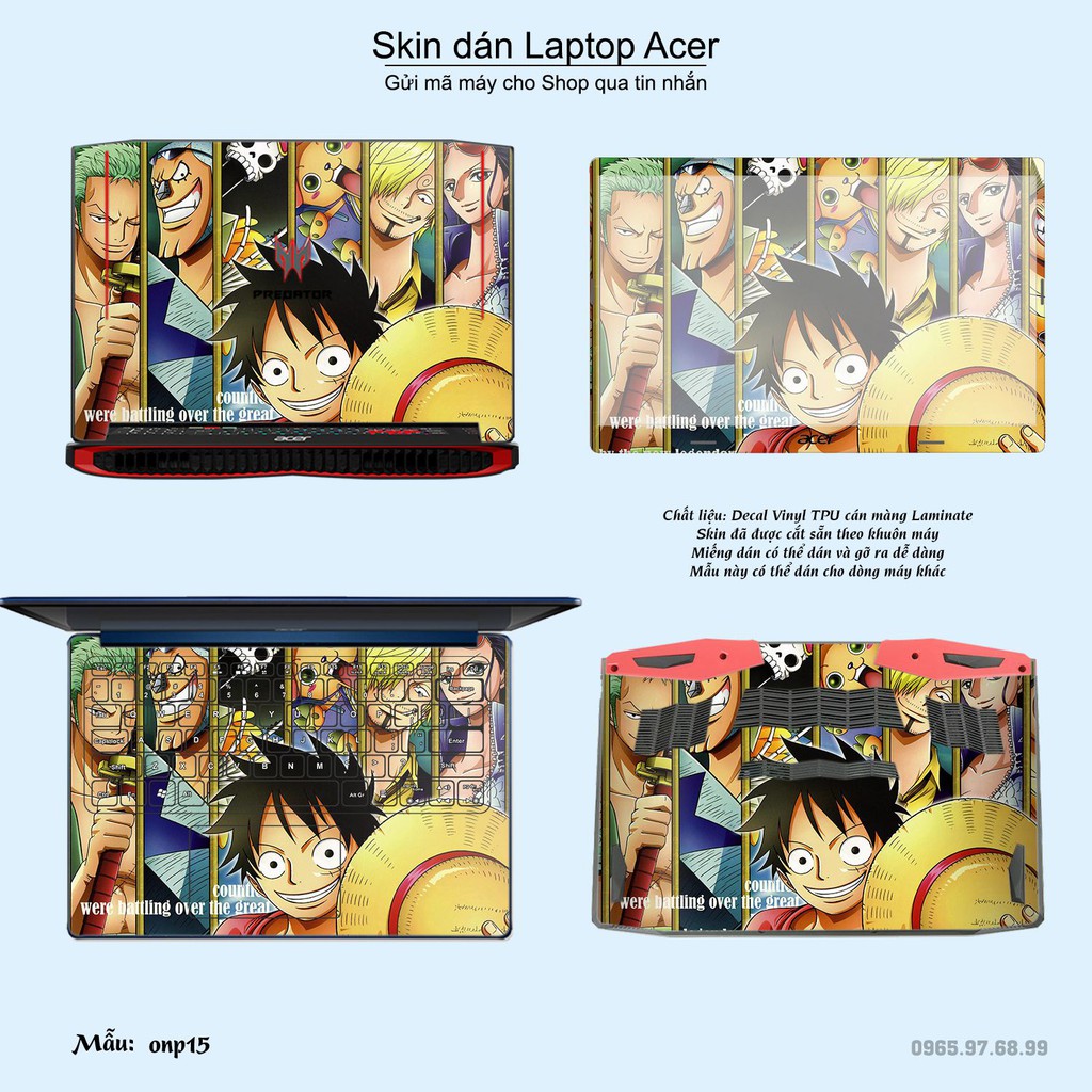 Máy tính & Laptop > Phụ Kiện Máy Tính > Miếng Dán & Ốp Laptop || Skin dán Laptop Acer in hình One Piece bộ 18 (inbox mã máy cho Shop)Còn hàng