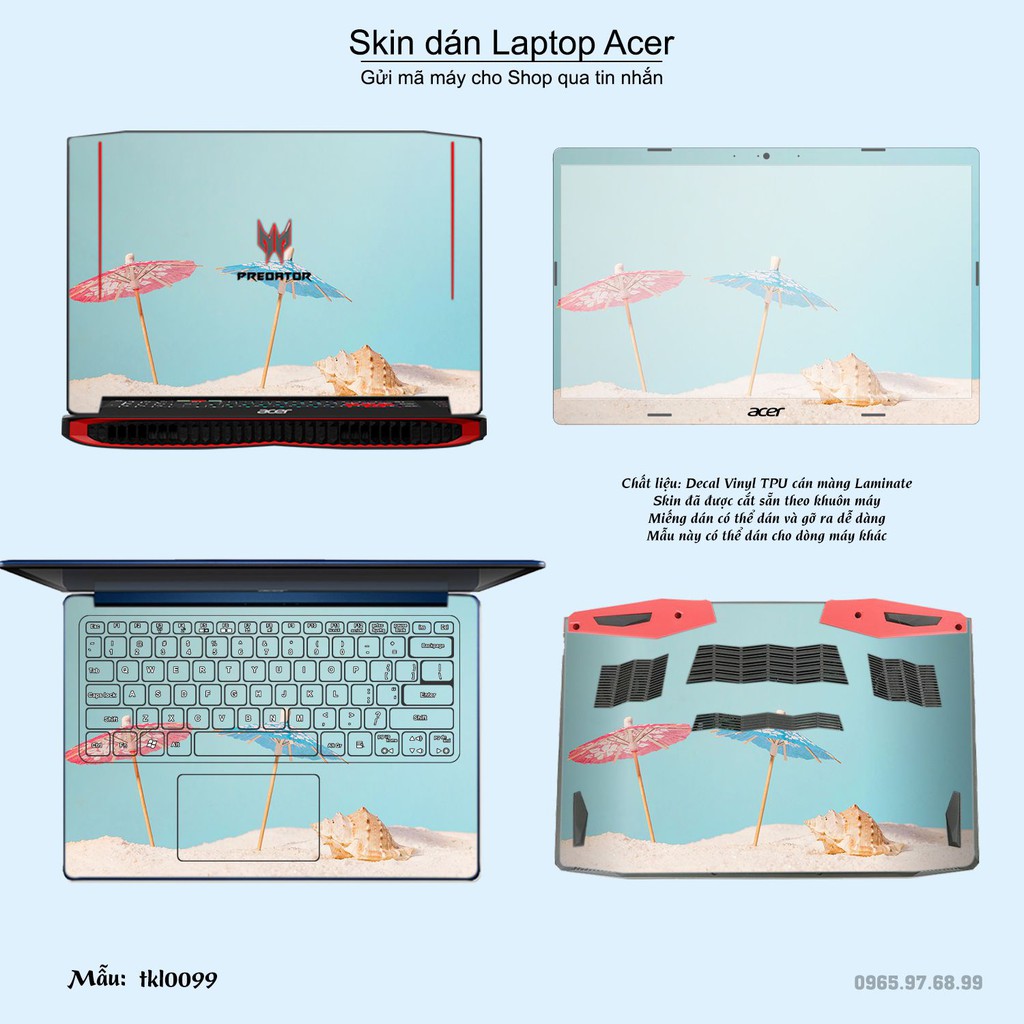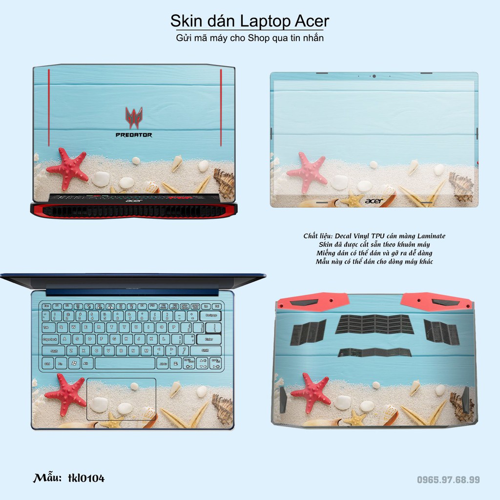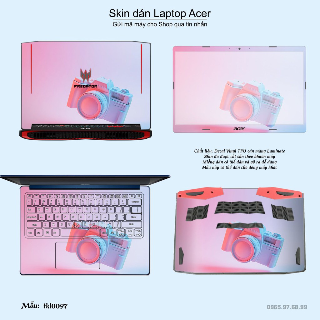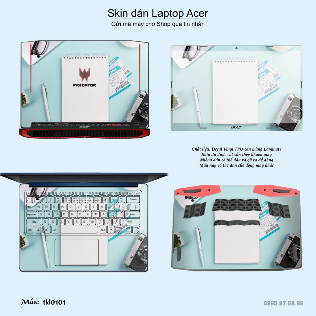 Skin dán là phương pháp tối ưu để làm đẹp và bảo vệ chiếc Laptop Acer của bạn,Miếng dán đã được cắt sẵn theo khuôn máy, cắt chính xác các chi tiết như camera, cảm biến, logo, bàn phím...