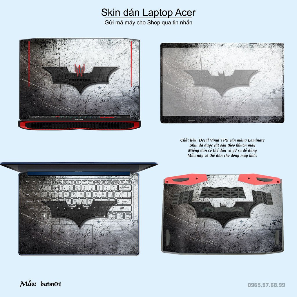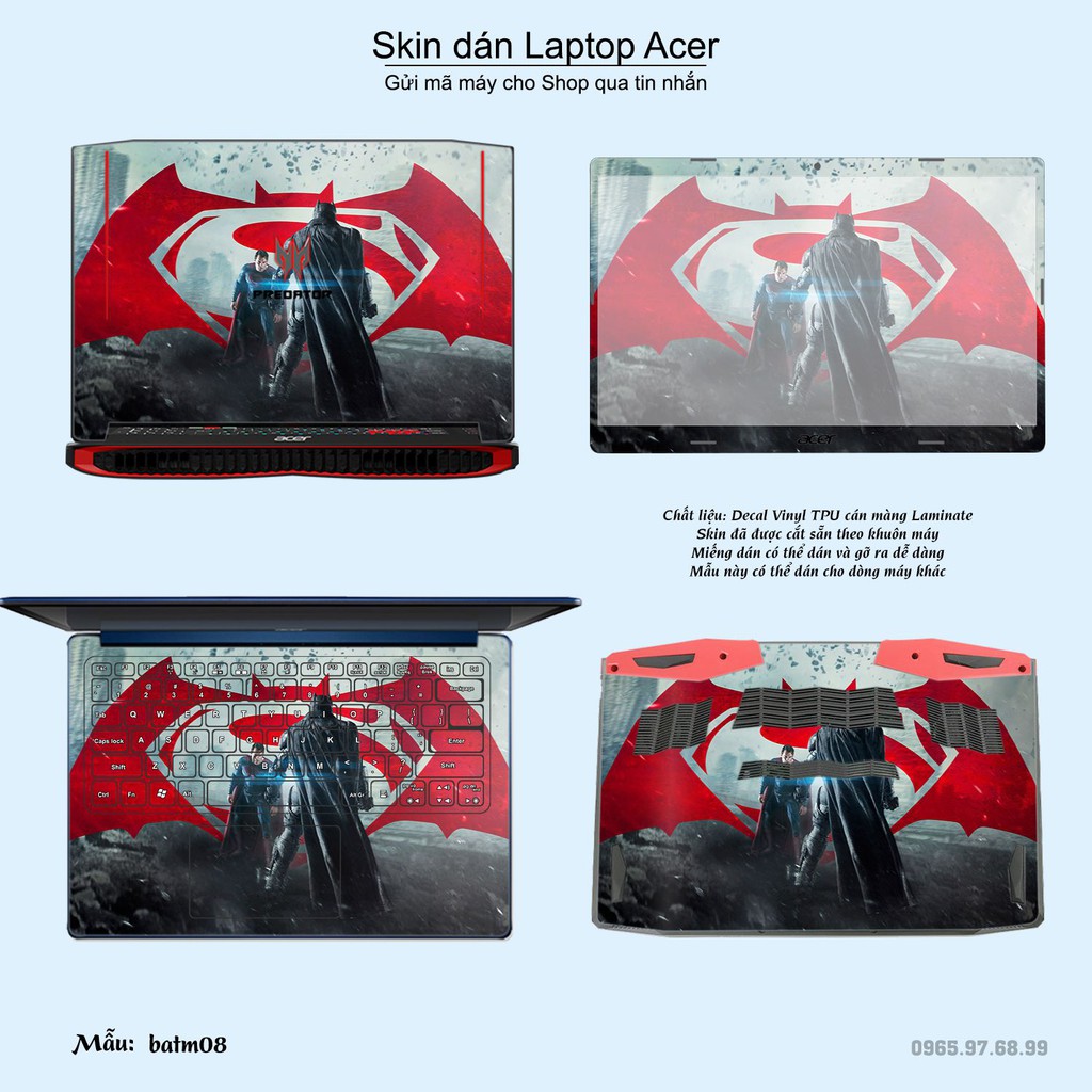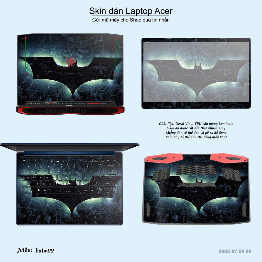 Skin dán Laptop Acer in hình Người dơi (inbox mã máy cho Shop)