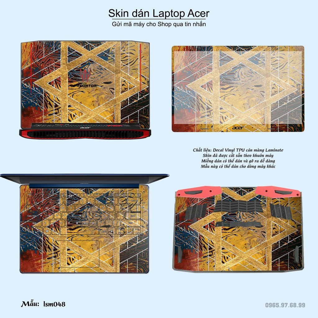 Máy tính & Laptop > Phụ Kiện Máy Tính > Miếng Dán & Ốp Laptop || Skin dán Laptop Acer in hình Tấm Khiên David - lsm048 (inbox mã máy cho Shop)Còn hàng