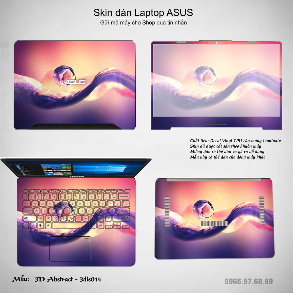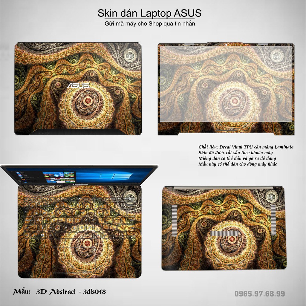 Máy tính & Laptop > Phụ Kiện Máy Tính > Miếng Dán & Ốp Laptop || Skin dán Laptop Asus in hình 3D Abstract (inbox mã máy cho Shop)Còn hàng