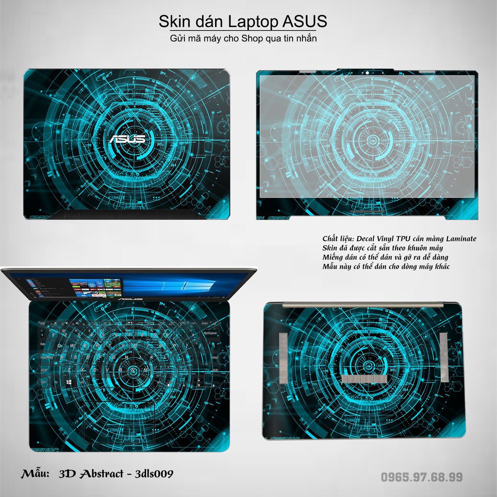 Skin dán Laptop Asus in hình 3D Abstract (inbox mã máy cho Shop)