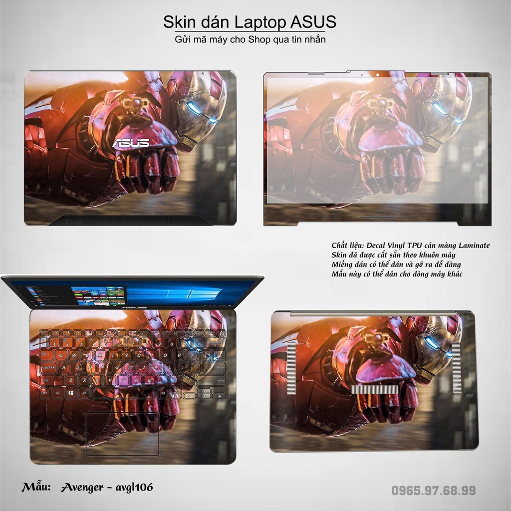 Giới thiệu Skin dán Laptop Asus in hình Avenger nhiều mẫu 2 (inbox mã máy cho Shop)