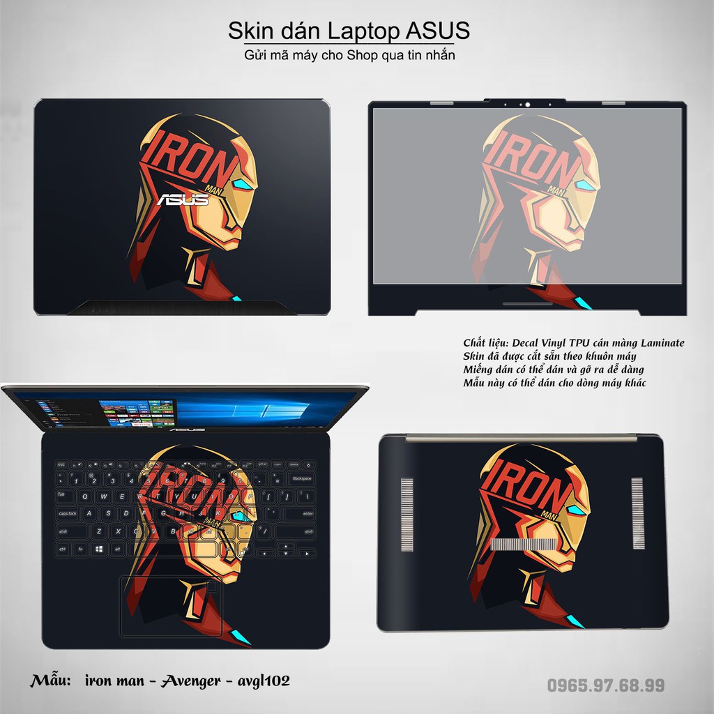 Máy tính & Laptop > Phụ Kiện Máy Tính > Miếng Dán & Ốp Laptop || Skin dán Laptop Asus in hình iron man - Avenger - avgl102 (inbox mã máy cho Shop)Còn hàng