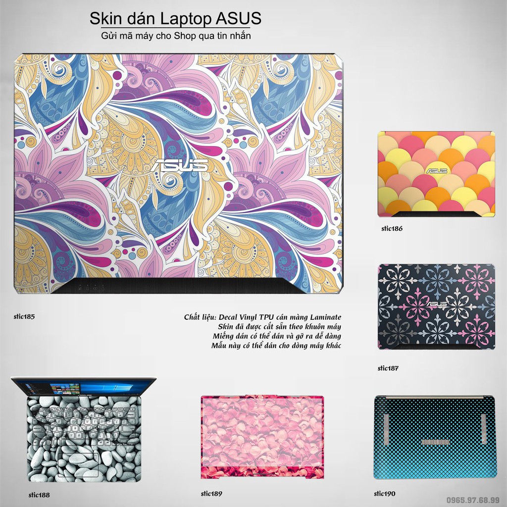 Máy tính & Laptop > Phụ Kiện Máy Tính > Miếng Dán & Ốp Laptop || Skin dán Laptop Asus in hình Hoa văn sticker bộ 31 (inbox mã máy cho Shop)Còn hàng
