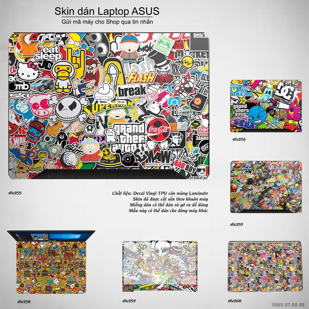 Giới thiệu Skin dán Laptop Asus in hình sticker bomb (inbox mã máy cho Shop)
