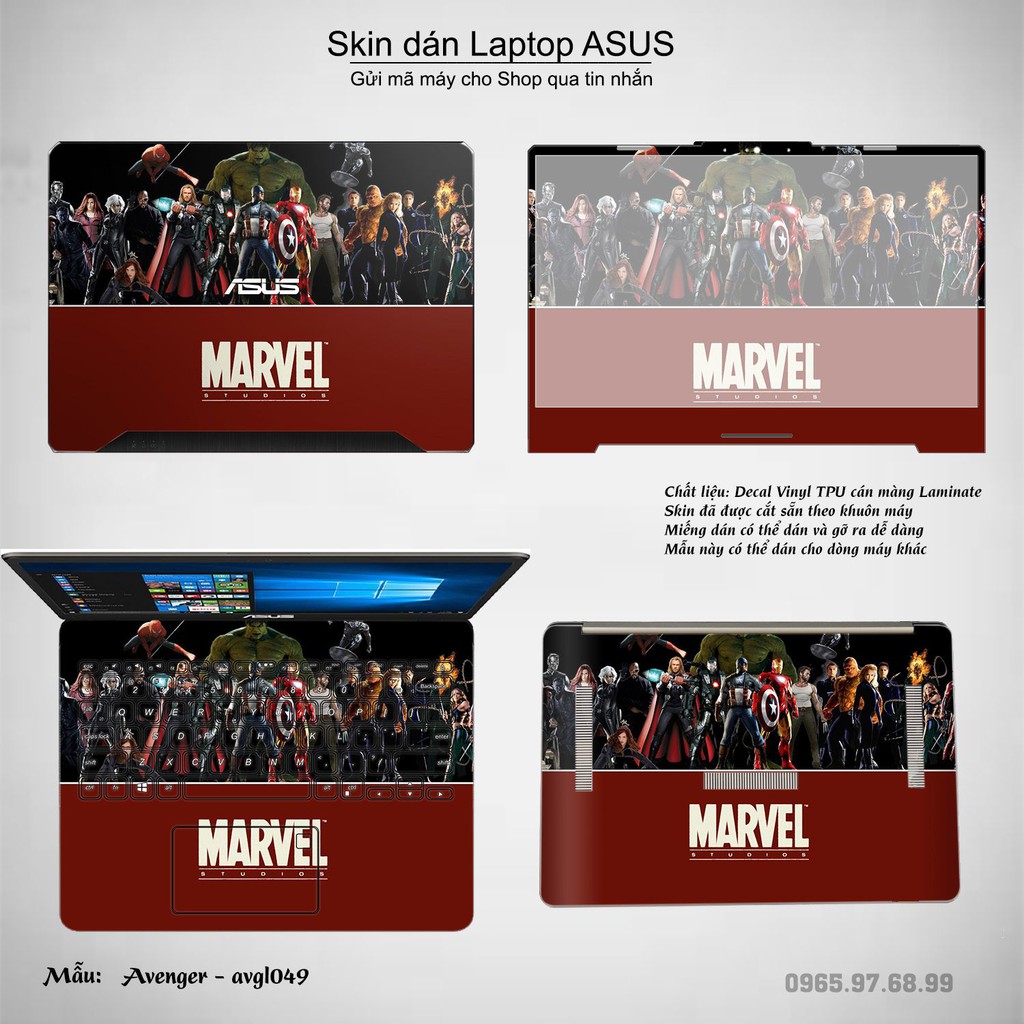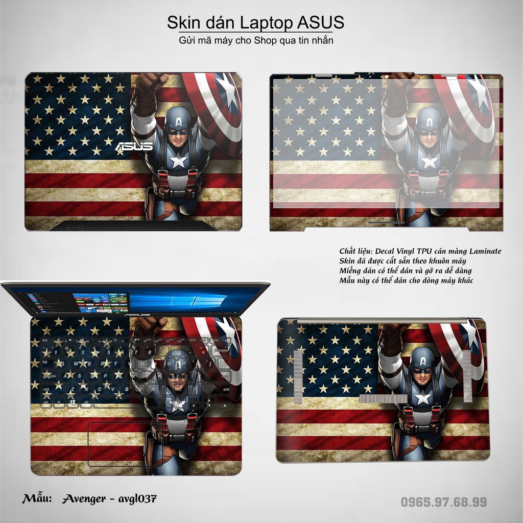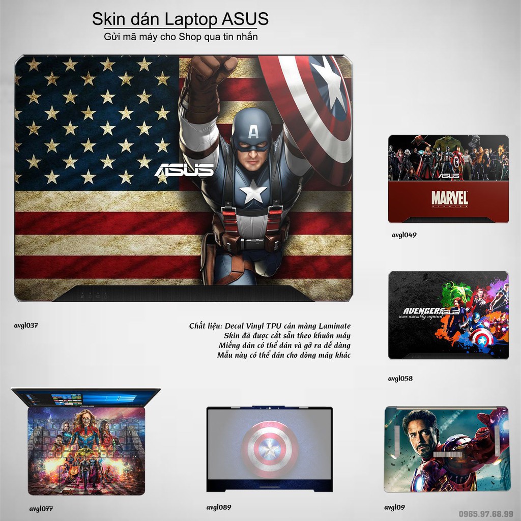 Giới thiệu Skin dán Laptop Asus in hình Avenger (inbox mã máy cho Shop)