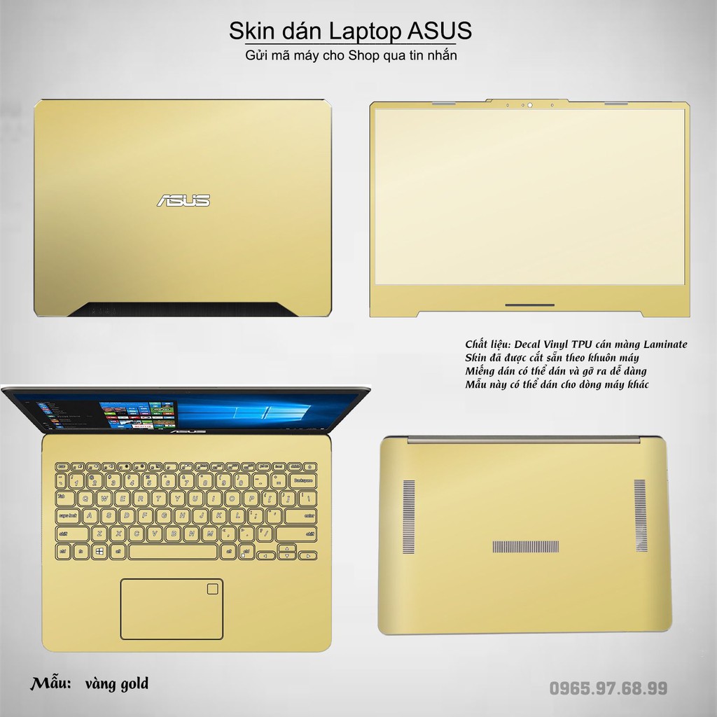 Skin dán Laptop Asus màu vàng gold (inbox mã máy cho Shop)