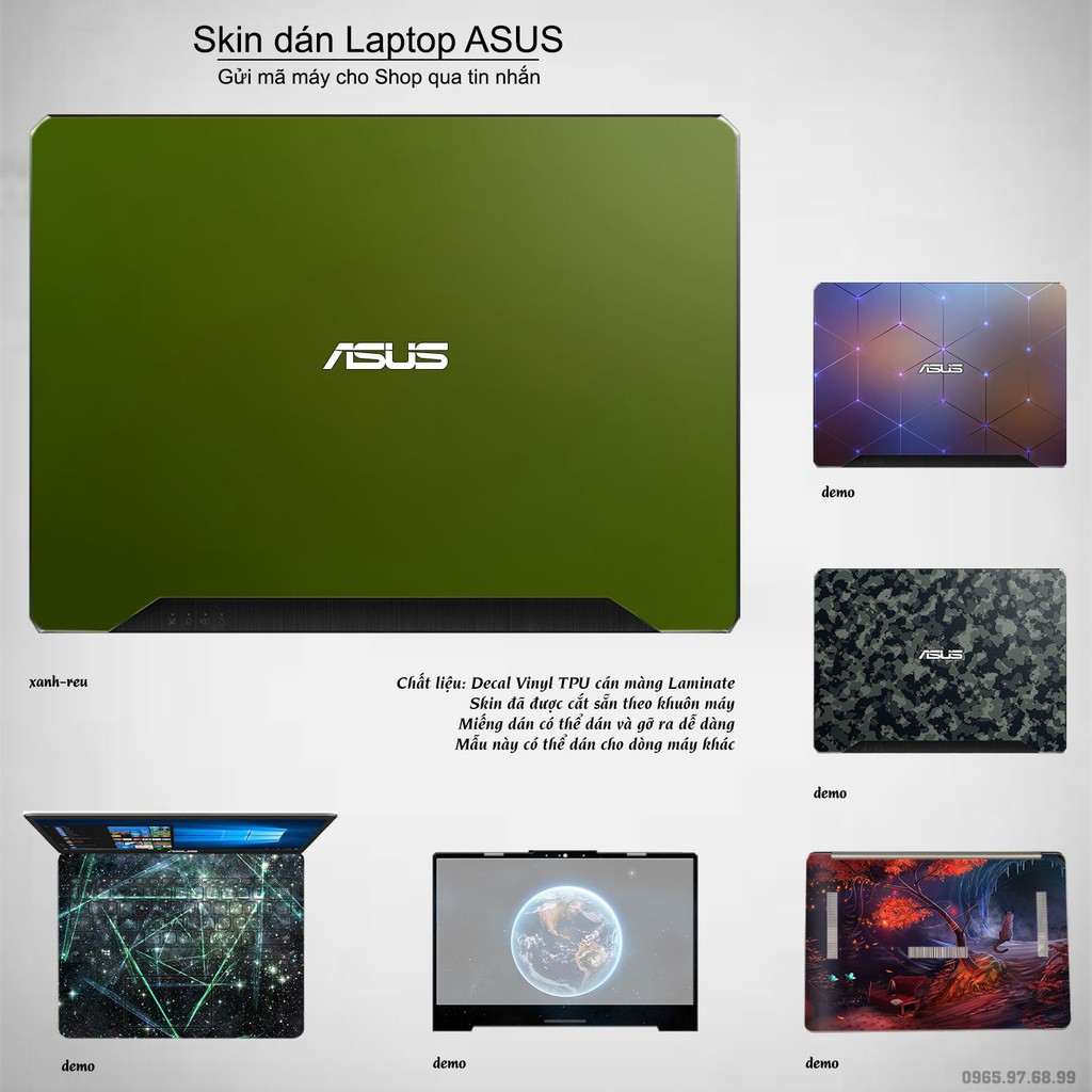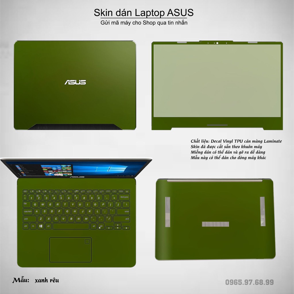 Skin dán Laptop Asus màu xanh rêu (inbox mã máy cho Shop)