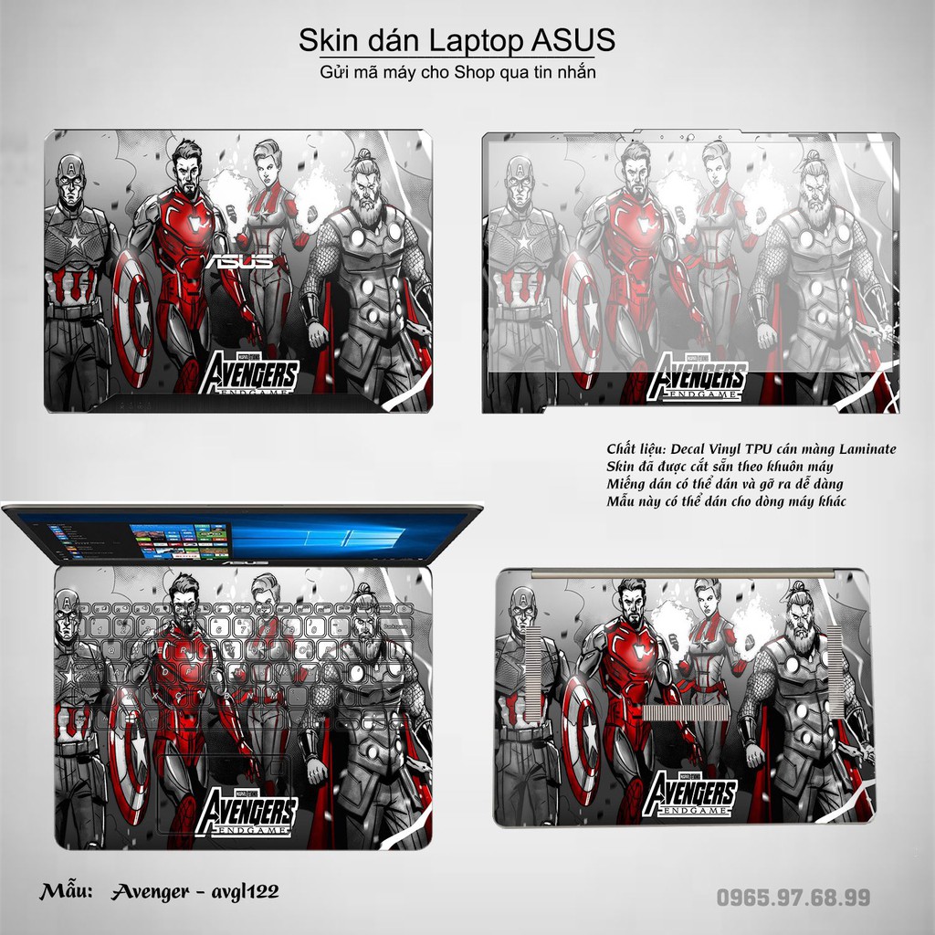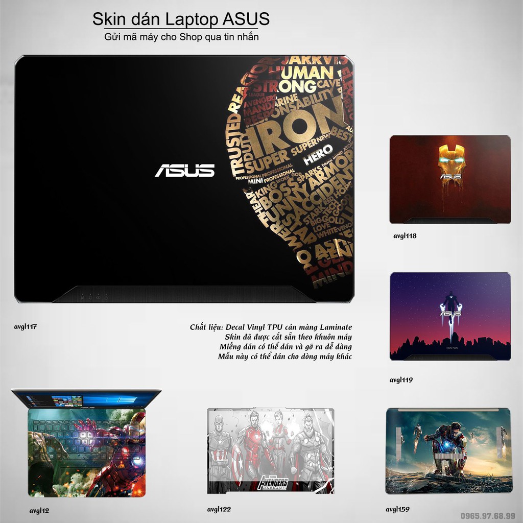Máy tính & Laptop > Phụ Kiện Máy Tính > Miếng Dán & Ốp Laptop || Skin dán Laptop Asus in hình Avenger bộ 3 (inbox mã máy cho Shop)Còn hàng
