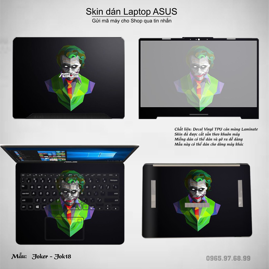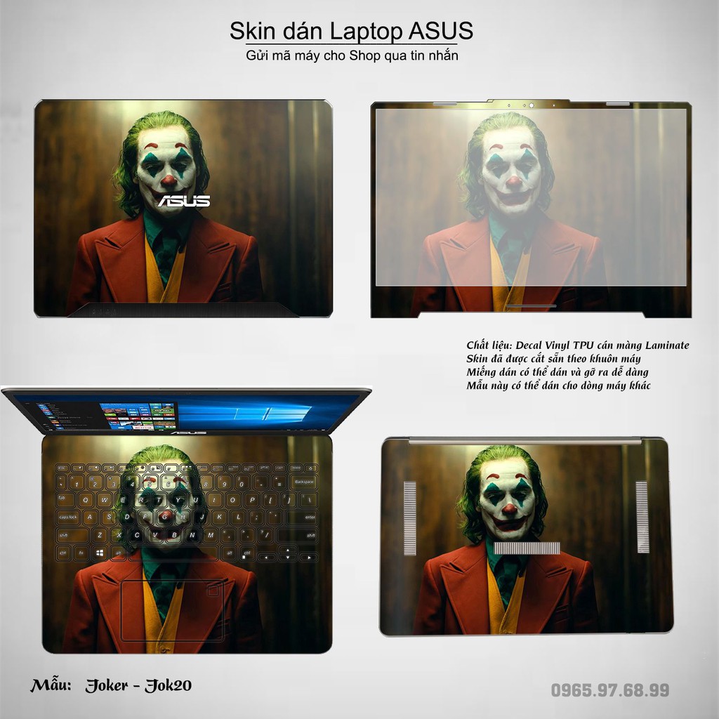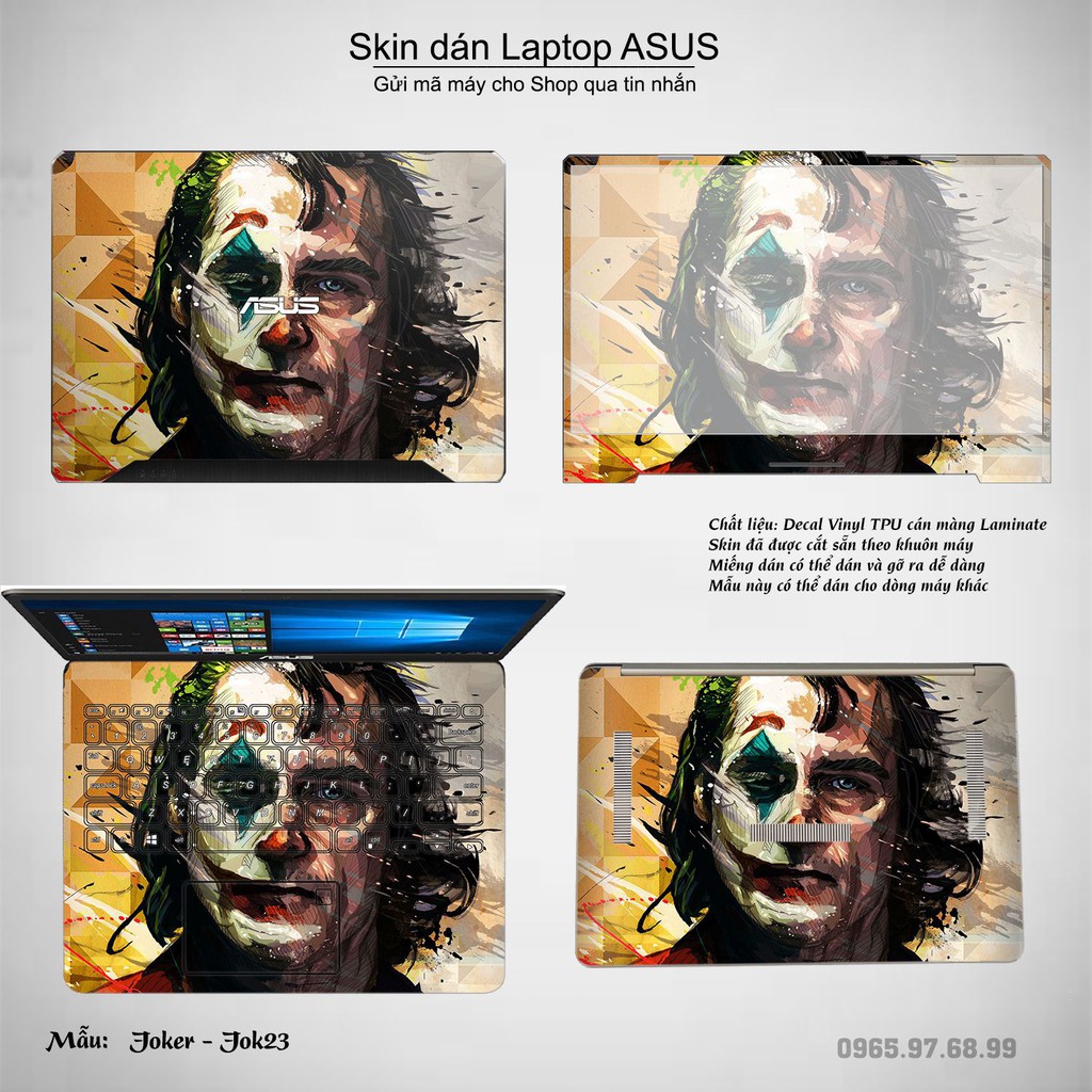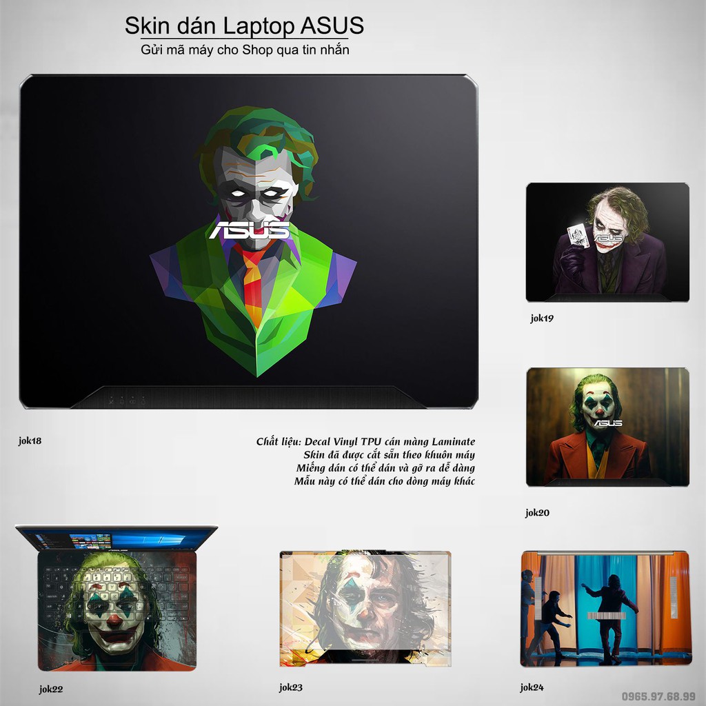Máy tính & Laptop > Phụ Kiện Máy Tính > Miếng Dán & Ốp Laptop || Skin dán Laptop Asus in hình Joker bộ 3 (inbox mã máy cho Shop)Còn hàng