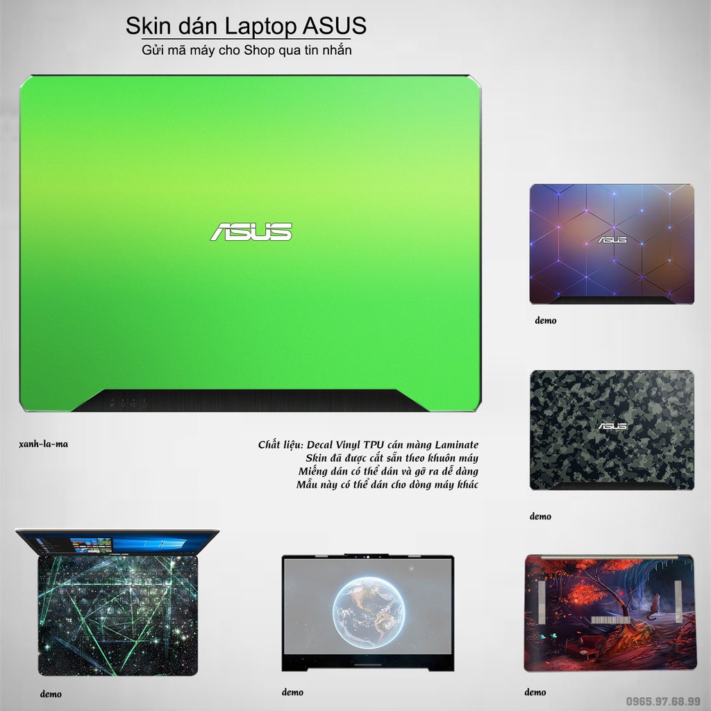 Giới thiệu Skin dán Laptop Asus màu xanh lá mạ (inbox mã máy cho Shop)
