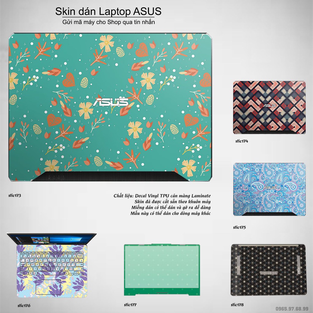 Máy tính & Laptop > Phụ Kiện Máy Tính > Miếng Dán & Ốp Laptop || Skin dán Laptop Asus in hình Hoa văn sticker bộ 29 (inbox mã máy cho Shop)Còn hàng