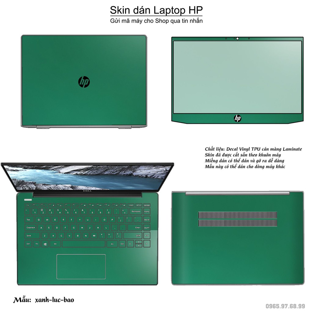 Giới thiệu Skin dán Laptop HP màu xanh lục bảo (inbox mã máy cho Shop)