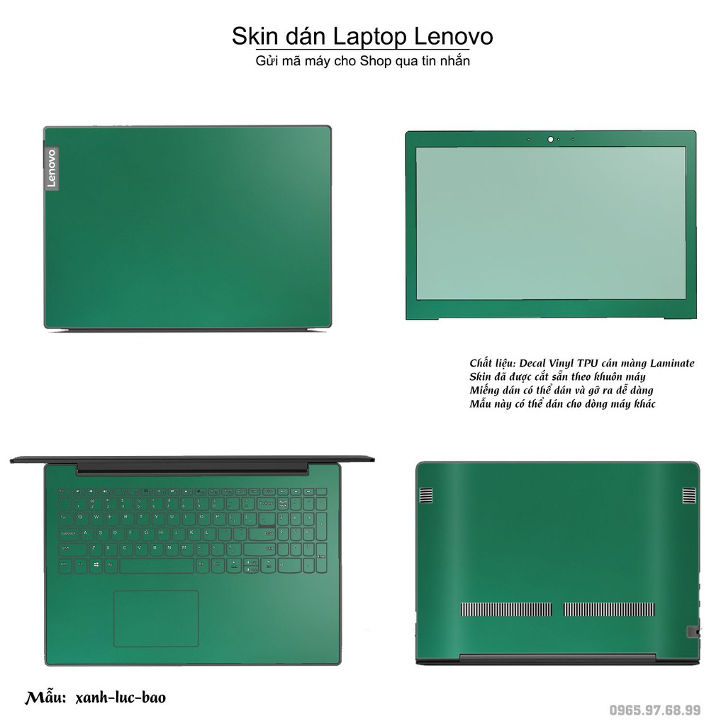 Giới thiệu Skin dán Laptop Lenovo in màu xanh lục bảo (inbox mã máy cho Shop)