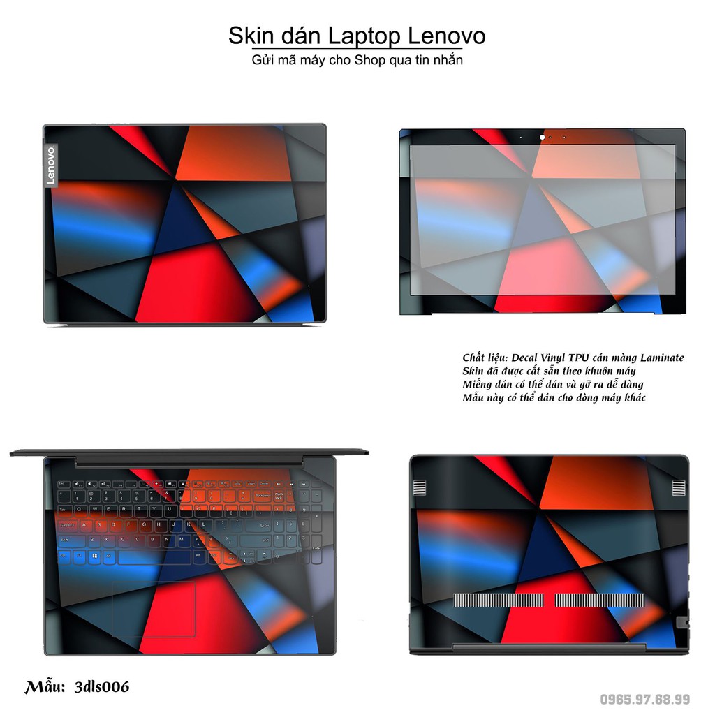 Skin dán Laptop Lenovo in hình 3D (inbox mã máy cho Shop)