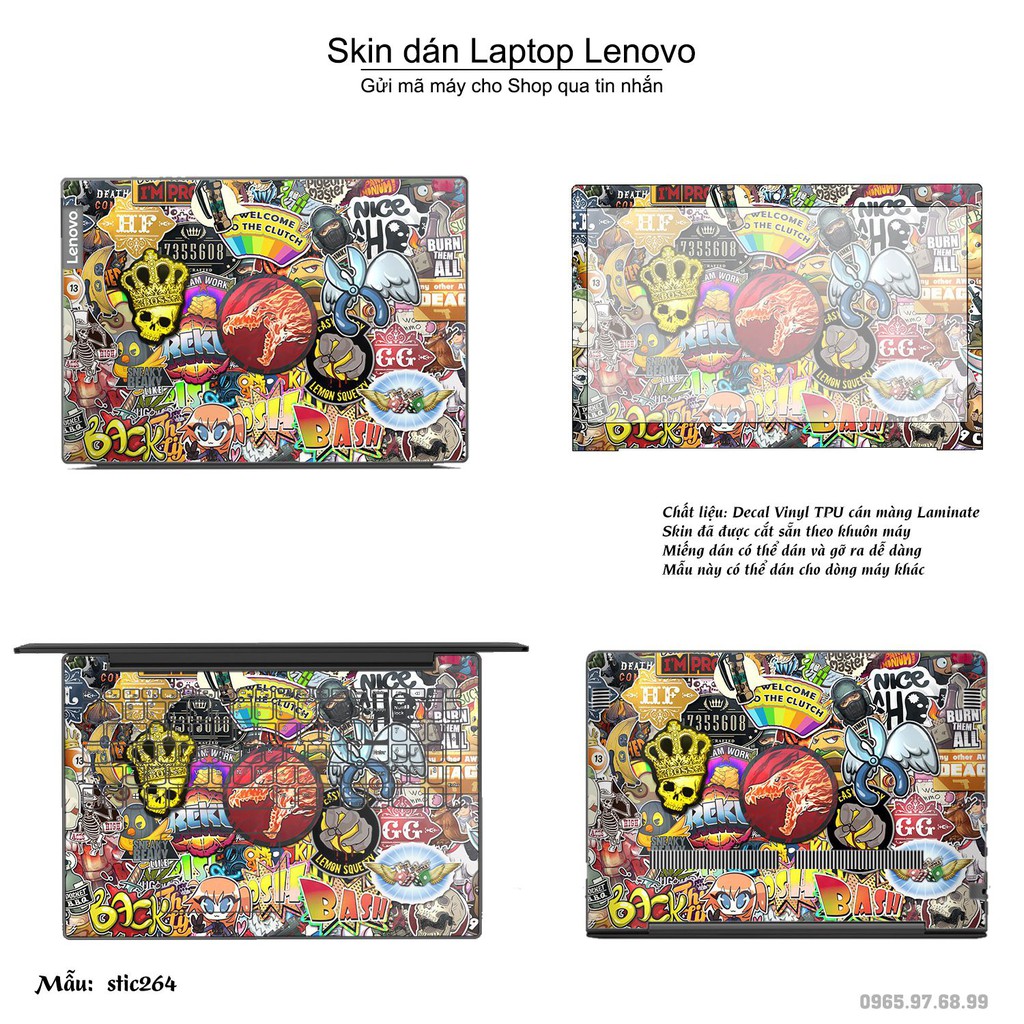 Skin dán Laptop Lenovo in hình sticker bomb nhiều mẫu 2 (inbox mã máy cho Shop)