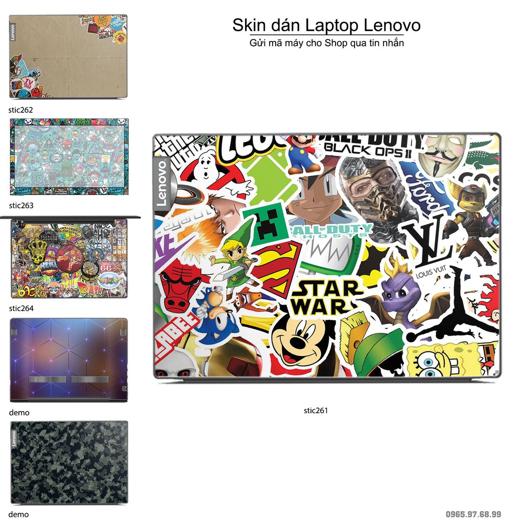 Máy tính & Laptop > Phụ Kiện Máy Tính > Miếng Dán & Ốp Laptop || Skin dán Laptop Lenovo in hình sticker bomb bộ 2 (inbox mã máy cho Shop)Còn hàng