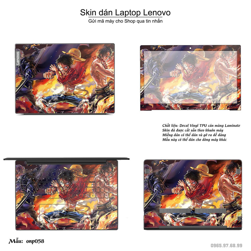 Máy tính & Laptop > Phụ Kiện Máy Tính > Miếng Dán & Ốp Laptop || Skin dán Laptop Lenovo in hình One Piece bộ 3 (inbox mã máy cho Shop)Còn hàng