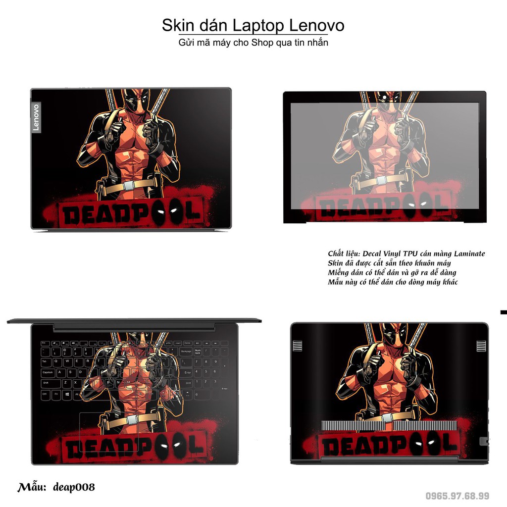 Skin dán Laptop Lenovo in hình Deadpool (inbox mã máy cho Shop)