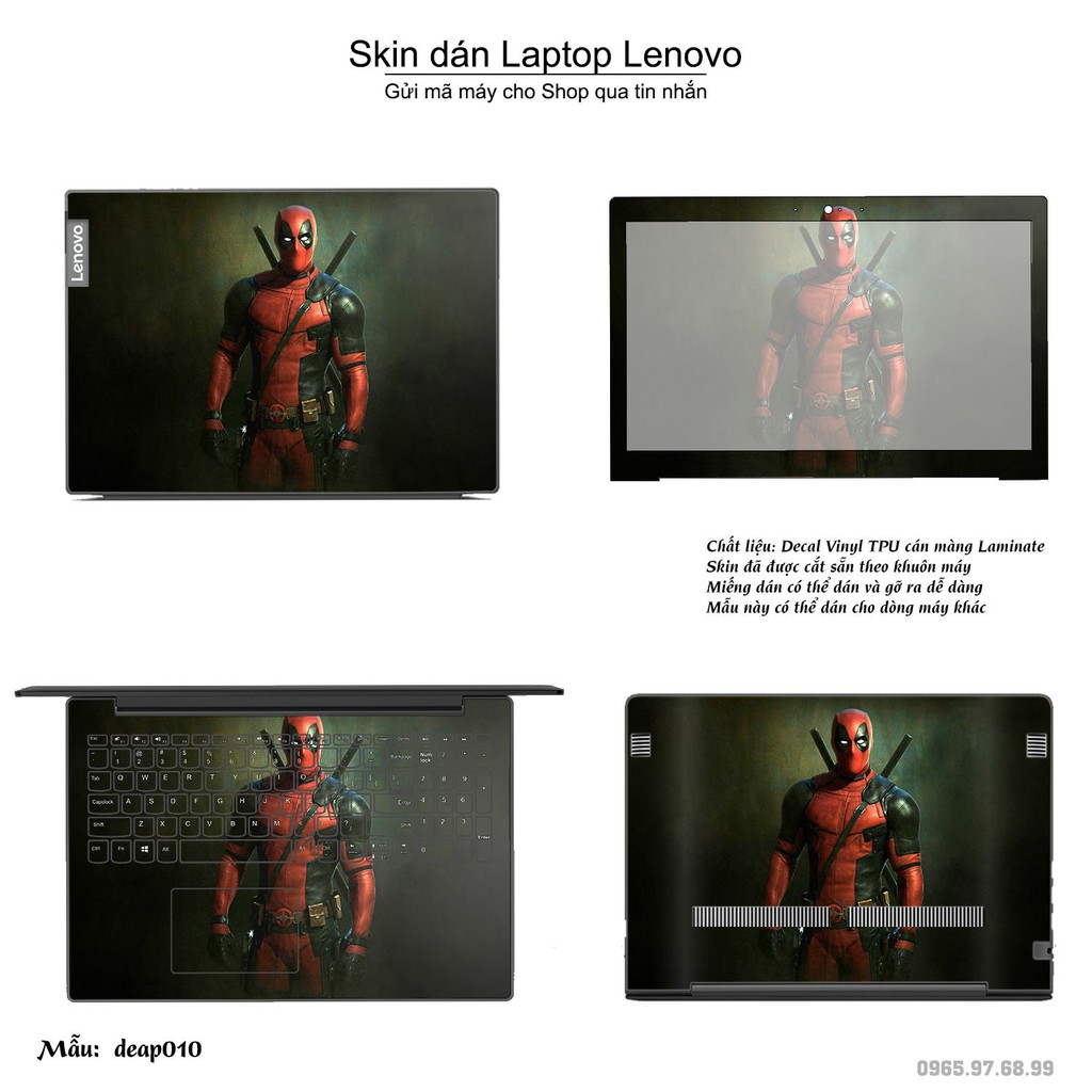 Giới thiệu Skin dán Laptop Lenovo in hình Deadpool (inbox mã máy cho Shop)