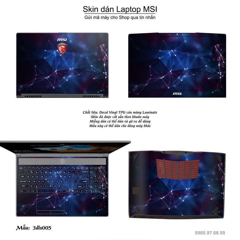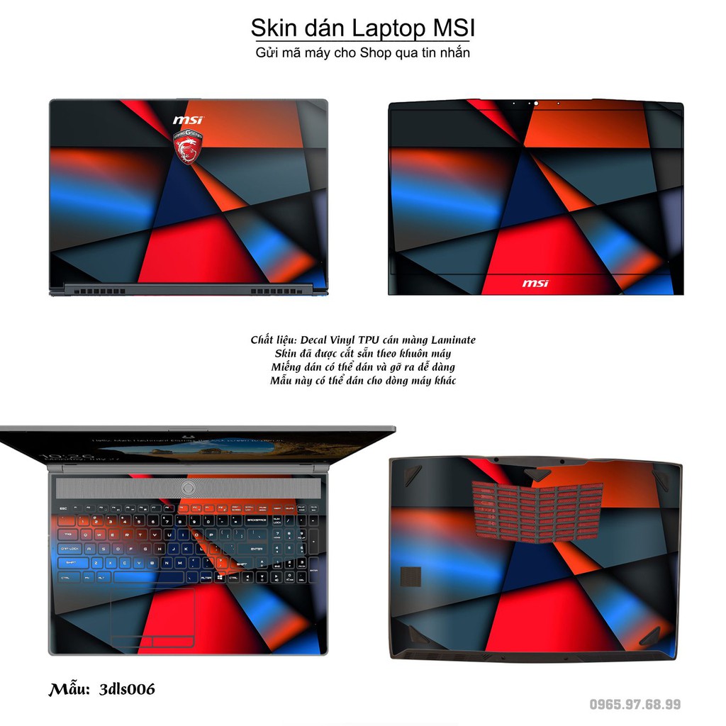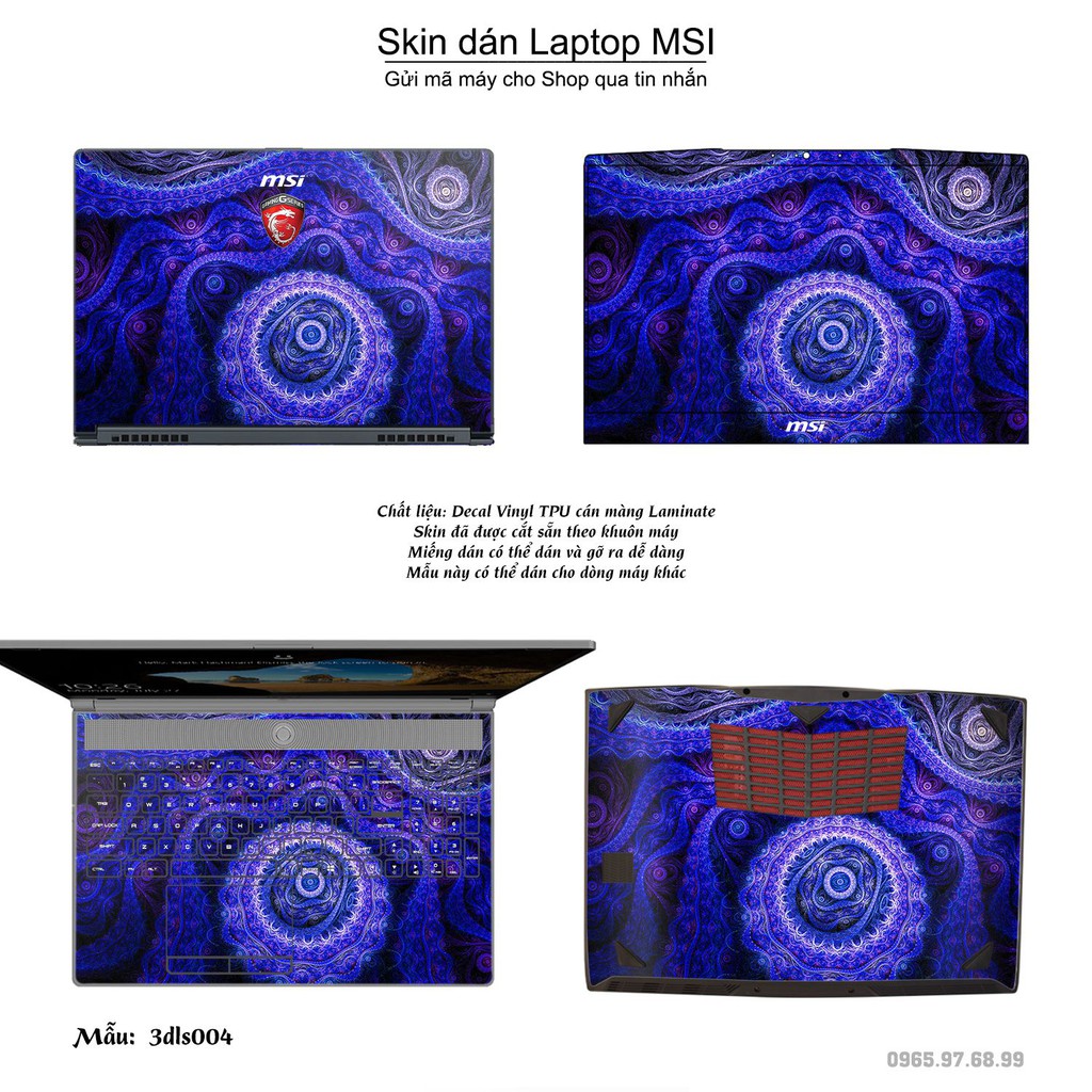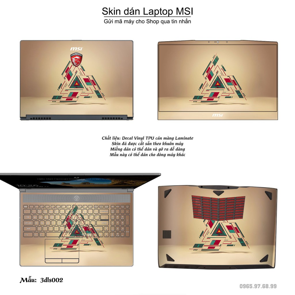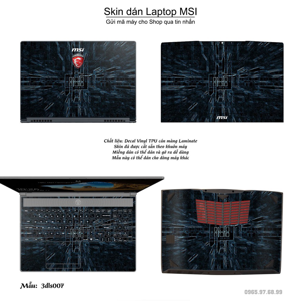 Skin dán Laptop MSI in hình 3D (inbox mã máy cho Shop)