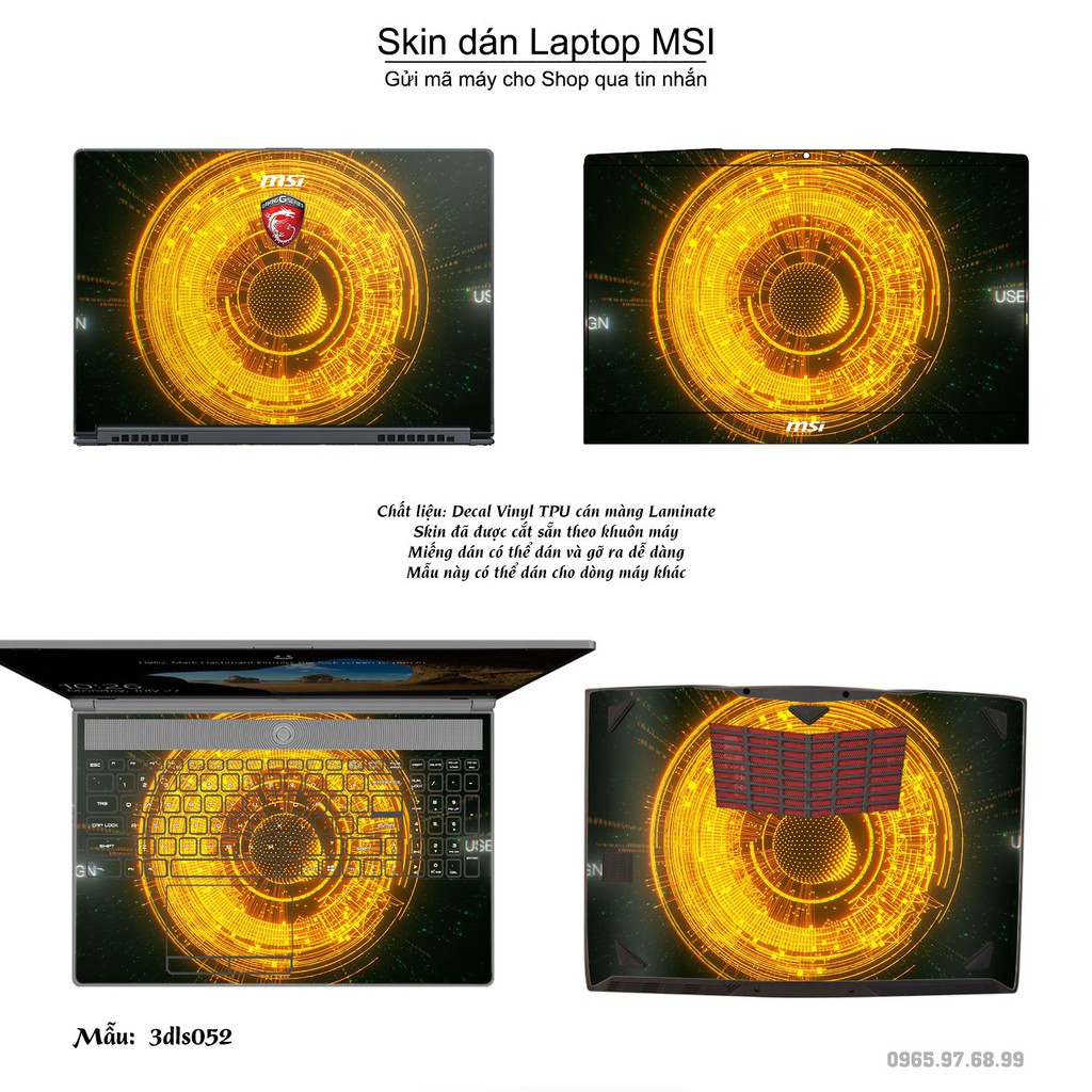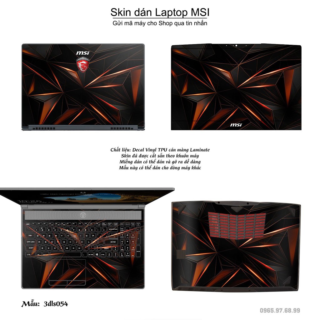 Giới thiệu Skin dán Laptop MSI in hình 3Ds (inbox mã máy cho Shop)