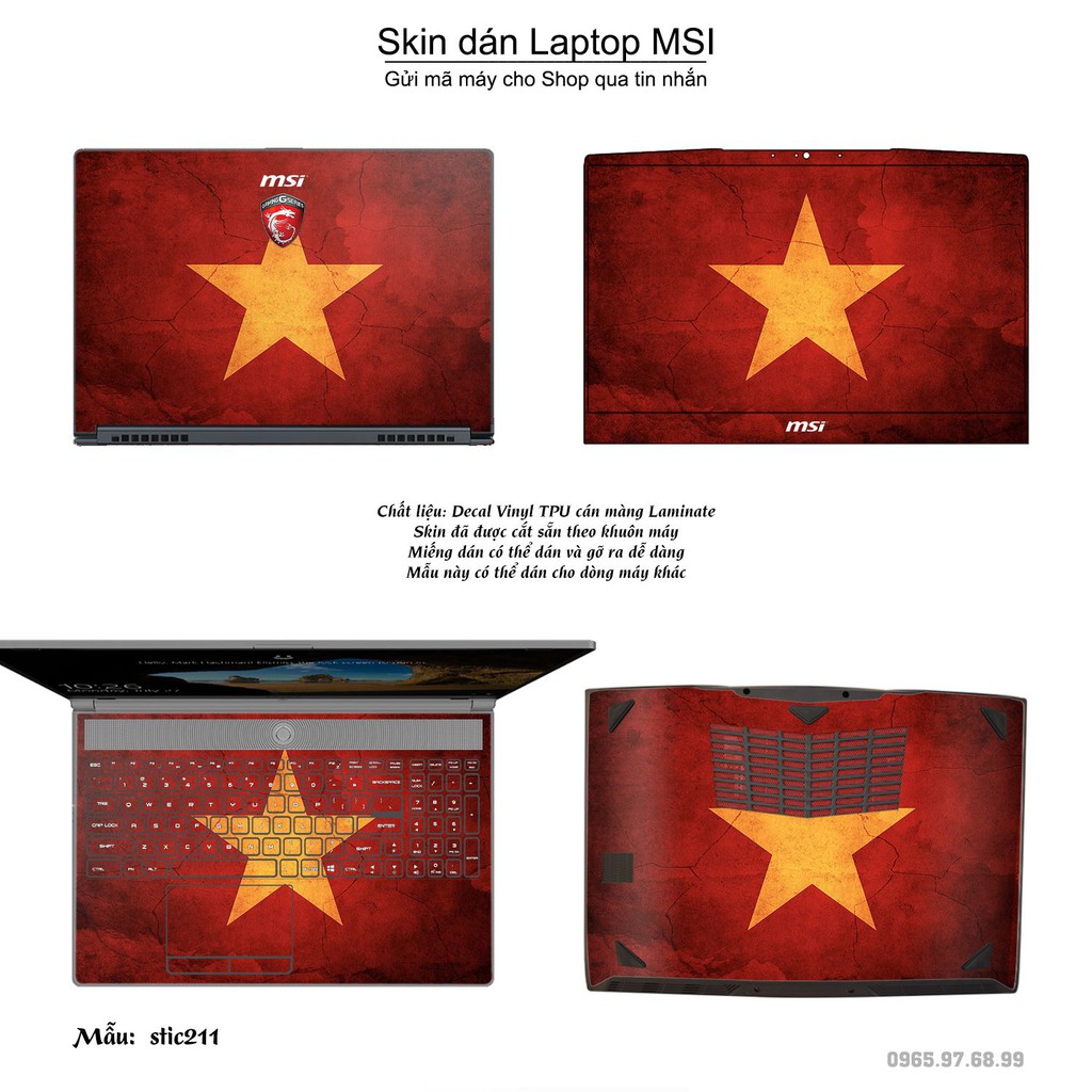 Máy tính & Laptop > Phụ Kiện Máy Tính > Miếng Dán & Ốp Laptop || Skin dán Laptop MSI in hình cờ Việt Nam (inbox mã máy cho Shop)Còn hàng