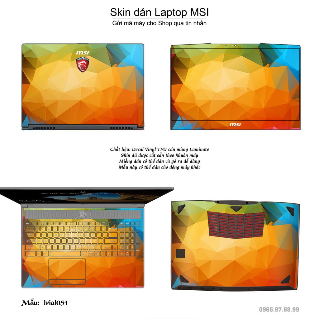 Máy tính & Laptop > Phụ Kiện Máy Tính > Miếng Dán & Ốp Laptop || Skin dán Laptop MSI in hình Đa giác bộ 9 (inbox mã máy cho Shop)Còn hàng