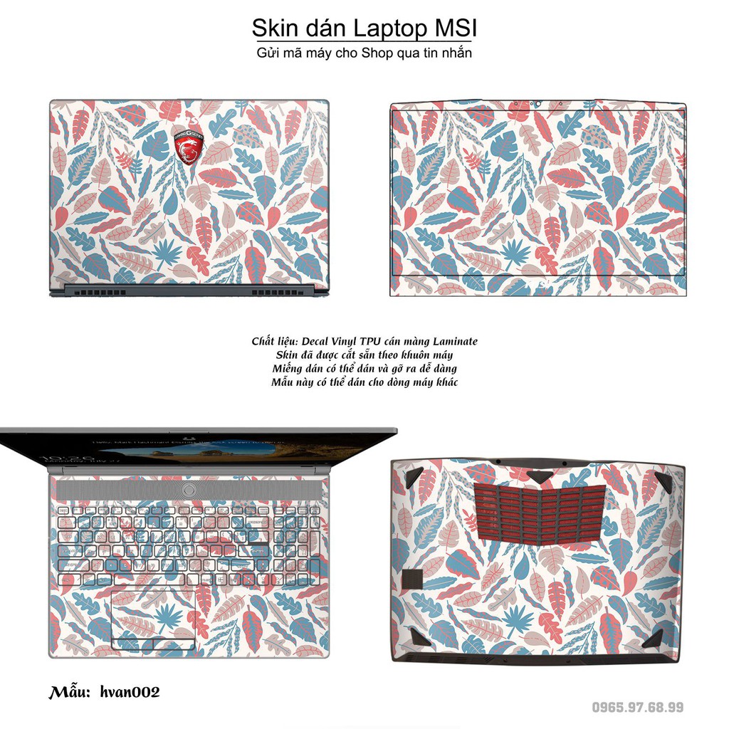 Máy tính & Laptop > Phụ Kiện Máy Tính > Miếng Dán & Ốp Laptop || Skin dán Laptop MSI in hình Hoa văn (inbox mã máy cho Shop)Còn hàng