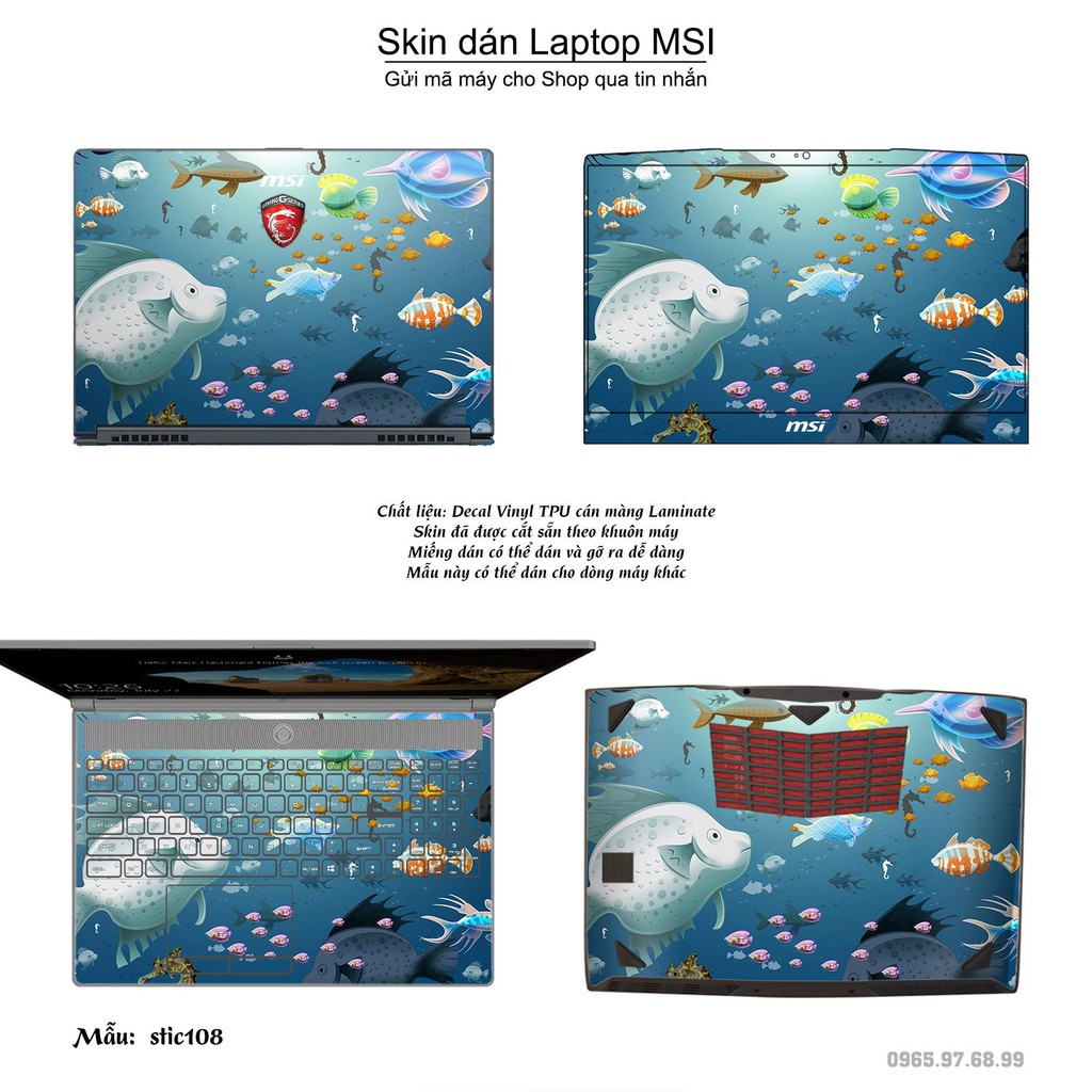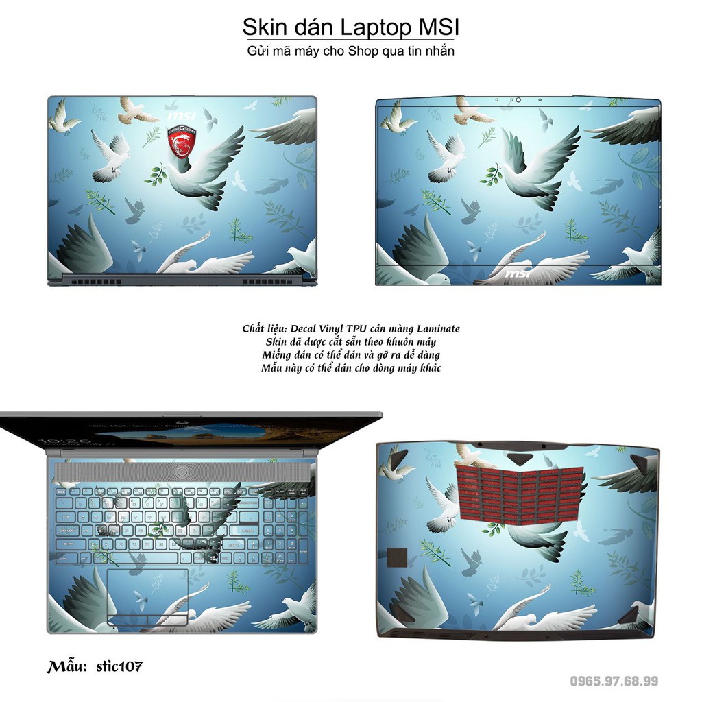 Máy tính & Laptop > Phụ Kiện Máy Tính > Miếng Dán & Ốp Laptop || Skin dán Laptop MSI in hình Hoa văn sticker bộ 18 (inbox mã máy cho Shop)Còn hàng